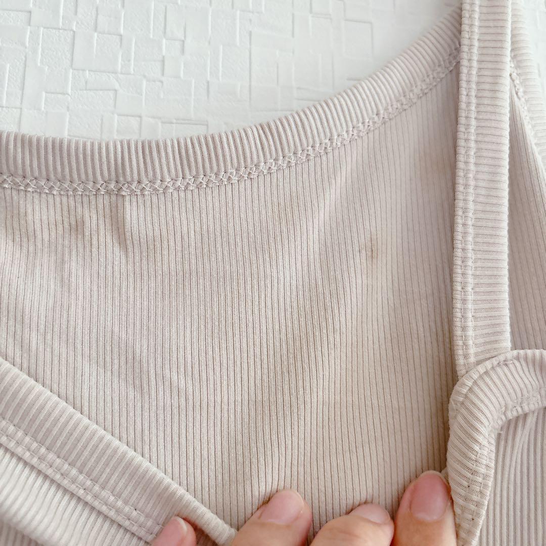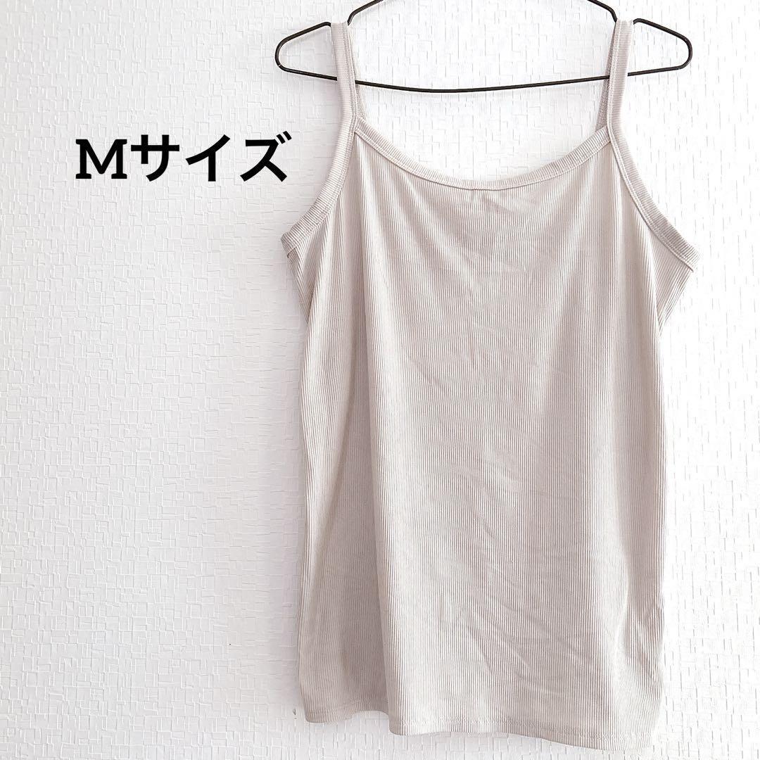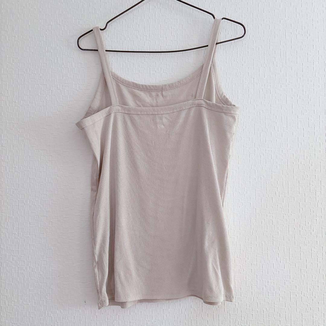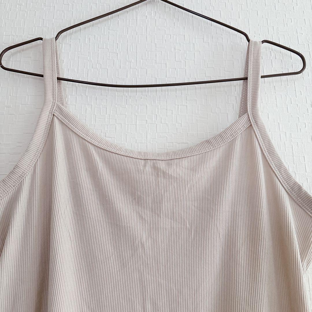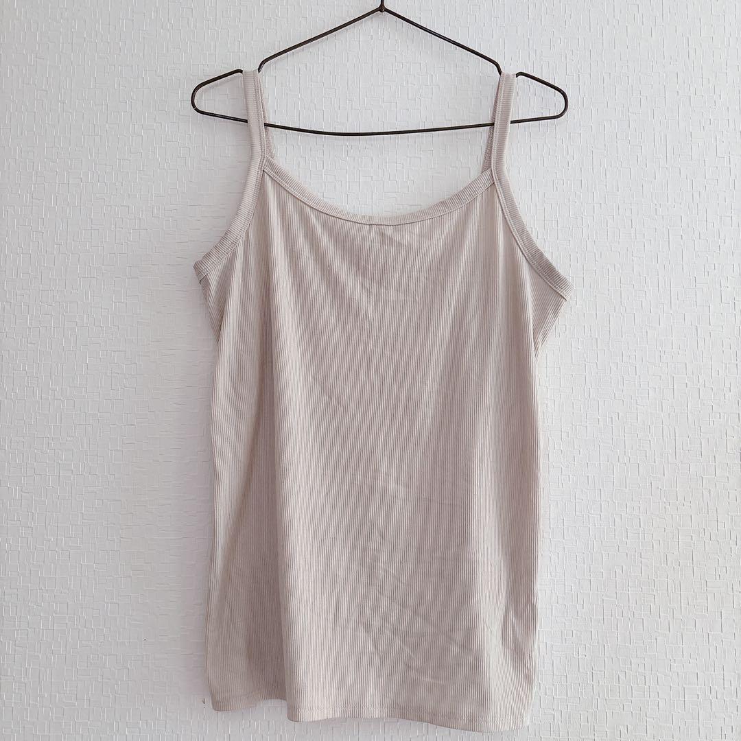 リブ編みデザインのベージュキャミソール。