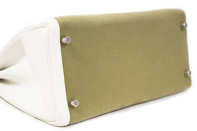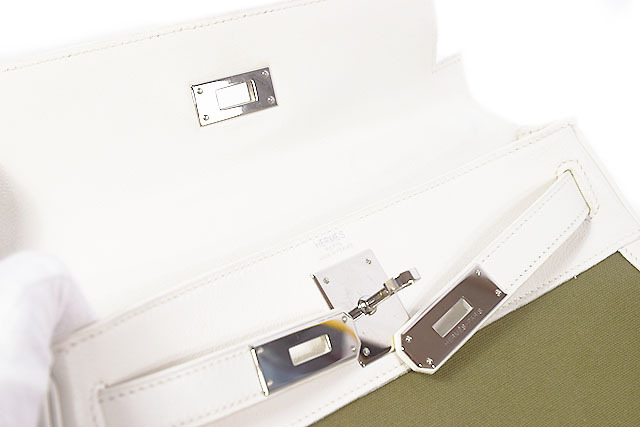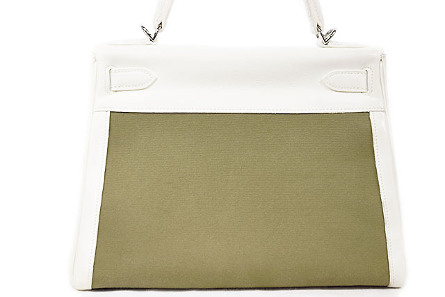 エルメス ケリー28 内縫い 白×カーキ ヴォーガリバー×トワル コンビ S金具 □K刻印 2色 シルバー金具 HERMES 本物 sbbt