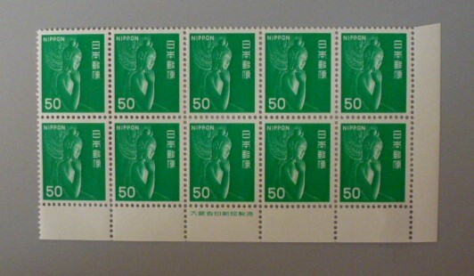 大蔵銘より 50円 中宮寺  逆抜櫛型  銘版10枚ブロック 未使用 完美品 MC-58-4