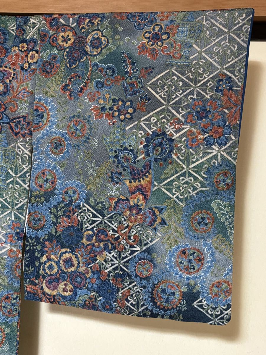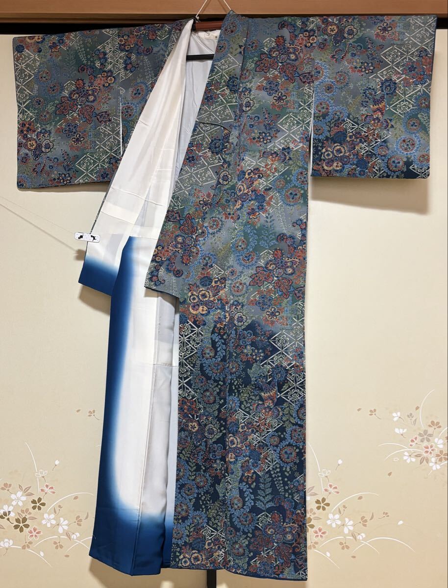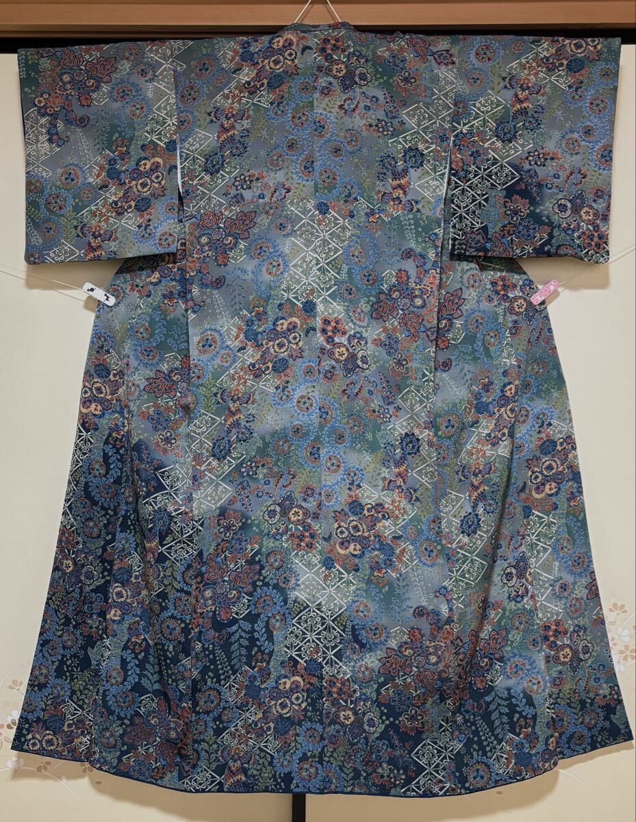 合いと色鮮やかな模様が美しい小紋のお着物。上質でクオリティの高い染めが魅力です。