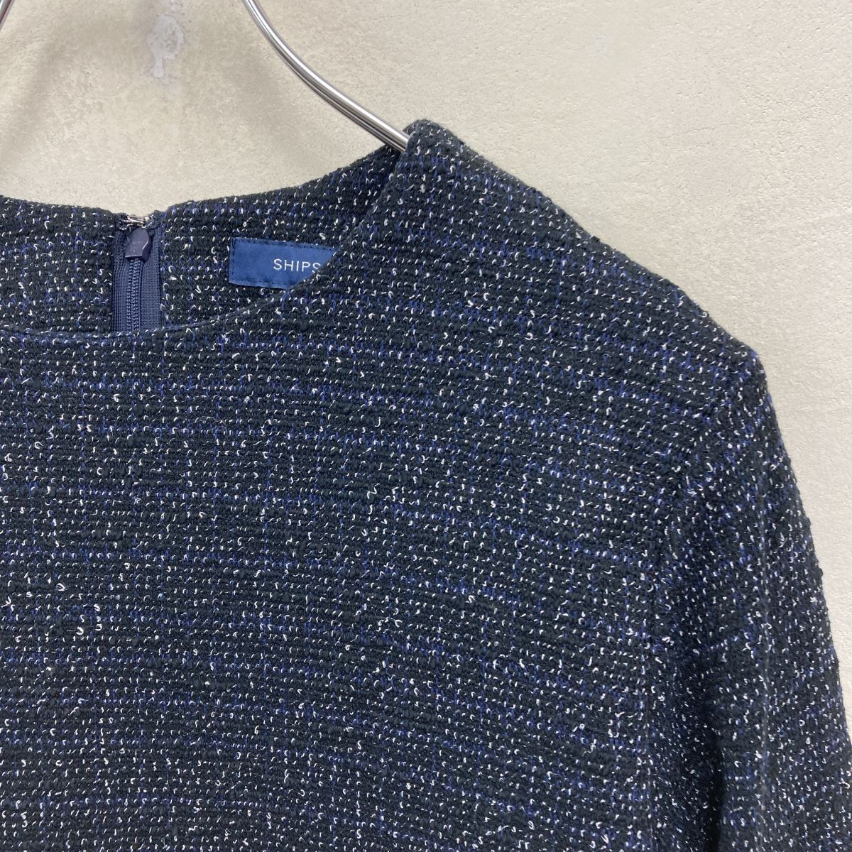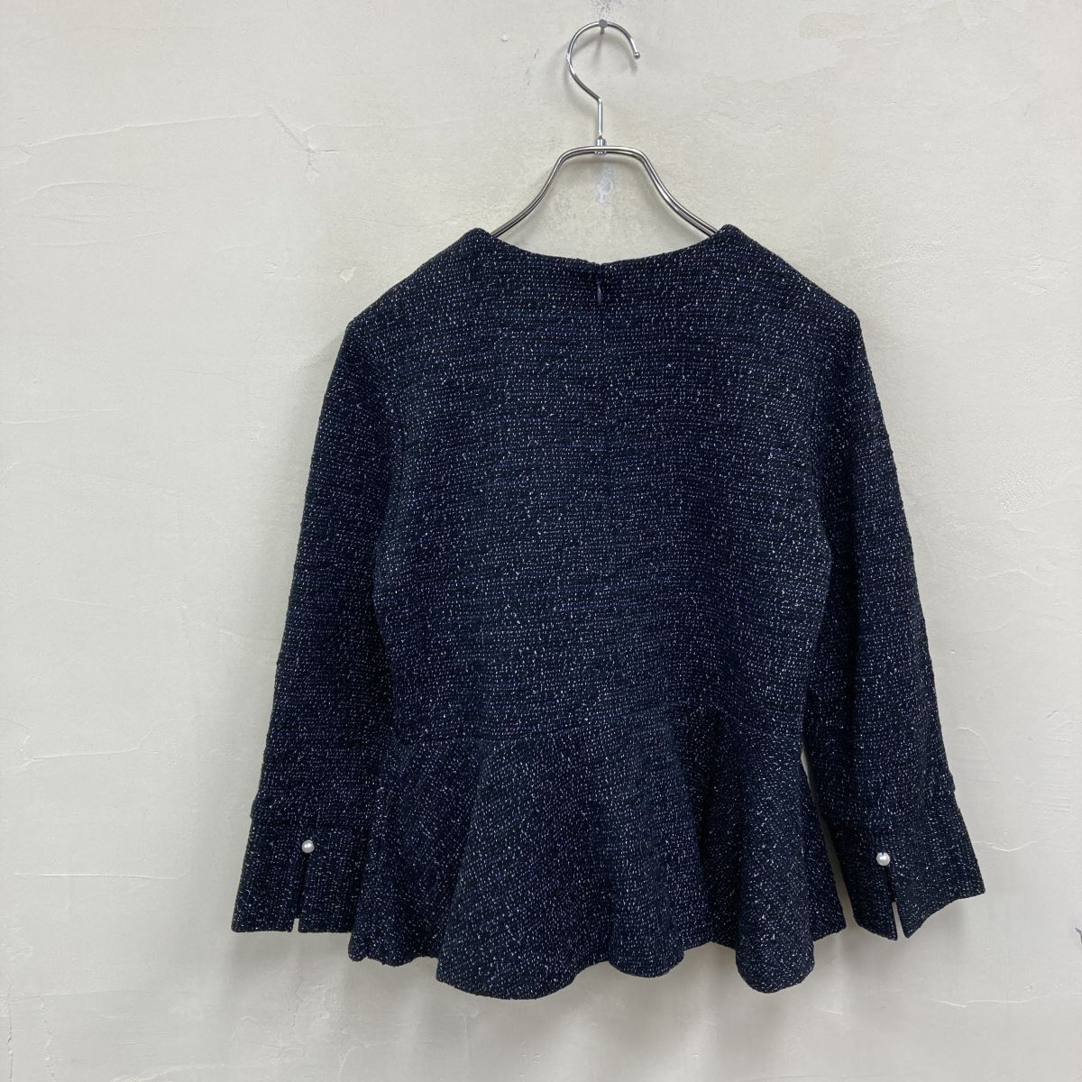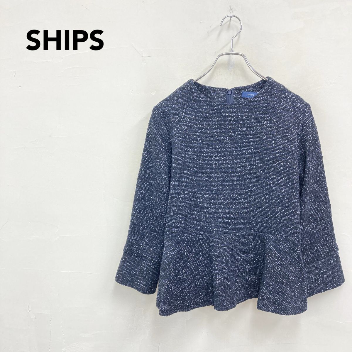 2O1117-J◆日本製 SHIPS シップス デザインプルオーバー◆ネイビー サイズM レディース トップス フォーマル パール使い ペプラム