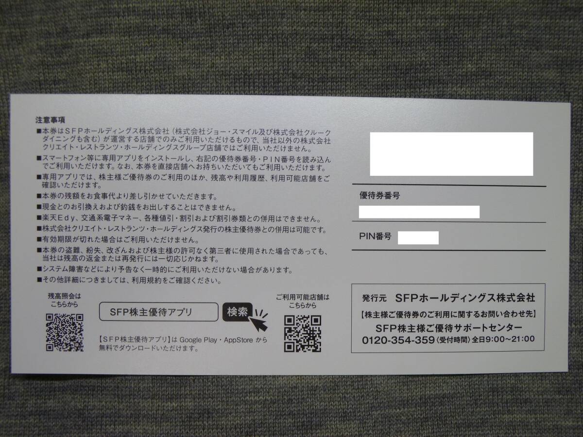 ☆SFPホールディングス 株主優待券4,000円券1枚 (2025/11/30まで)【普通郵便送料無料】