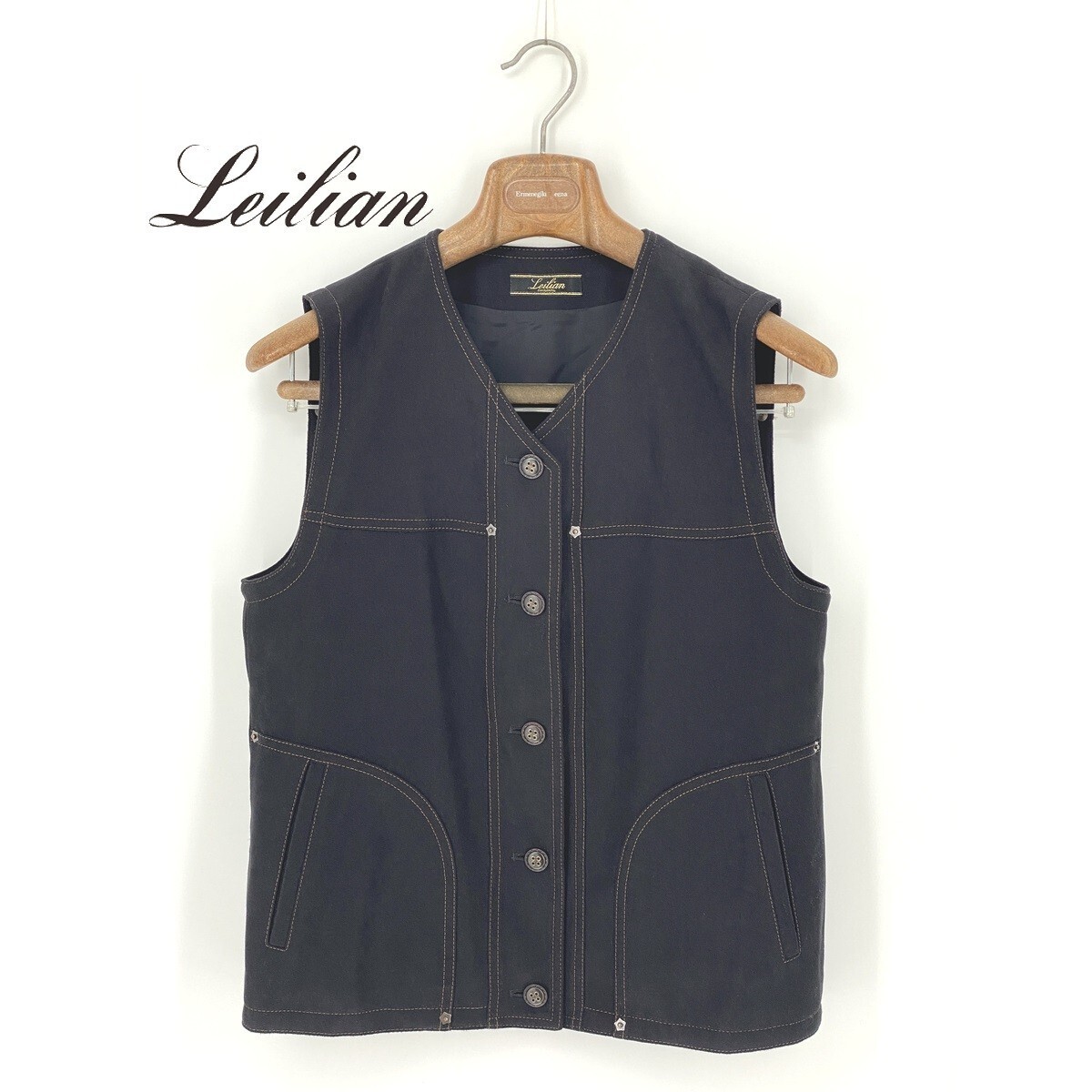 B0081/極美品 Leilian レリアン ポリエステル 装飾付き おしゃれボタン ノースリーブ ベスト ジレ ブルゾン ジャケット 9 M 黒 レディース