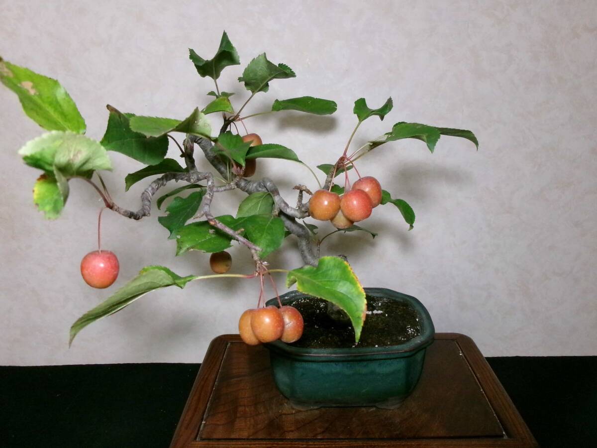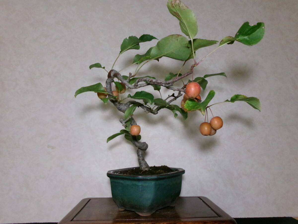 希少 古木感上々 姫林檎 姫りんご 風流な文人調の吹き流し仕立て 持込の貴風盆栽 樹高35センチ(地際から26センチ) | |||||||||||