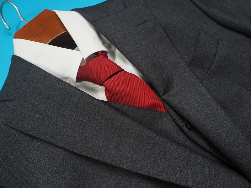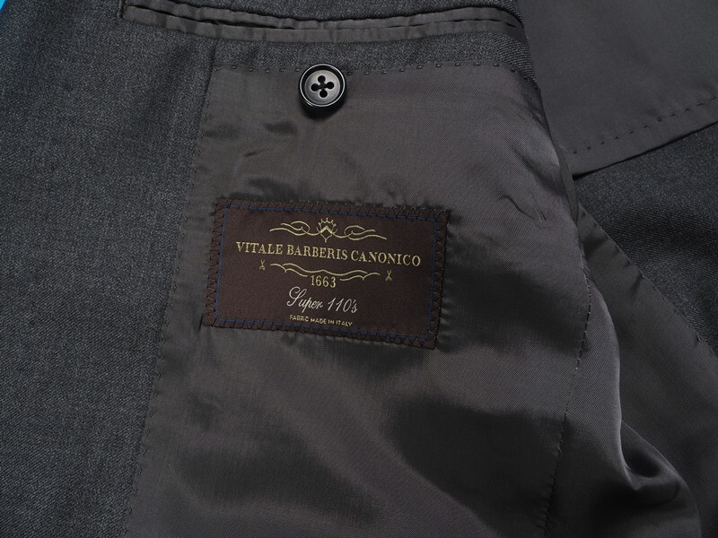 本切羽、お台場仕立て、AMFステッチ、毛芯を用いた縫製など、既製品のブランドスーツではここまで仕立てにこだわったスーツは手に入りません。ファブリックはイタリアを代表するファブリックメーカー、カノニコ社のウール100%ギャバジンソリッド無地生地を使用。イタリアならではの深み、光沢のある染色技術で仕上げています。毛羽立ちはほとんどなく、上質なSUPER110'sウールならではの美しいドレープ性を味わえます。