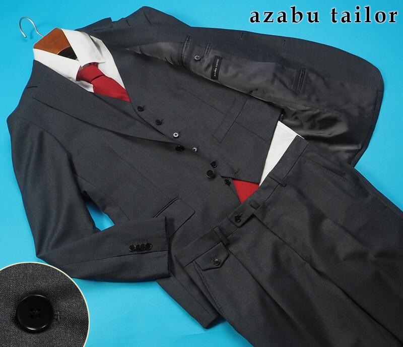 新品サンプル azabu tailor 麻布テーラー 春秋『CANONICO カノニコ イタリア製生地』Super110S 無地 スリーピーススーツ 46A(A5)灰 5688014