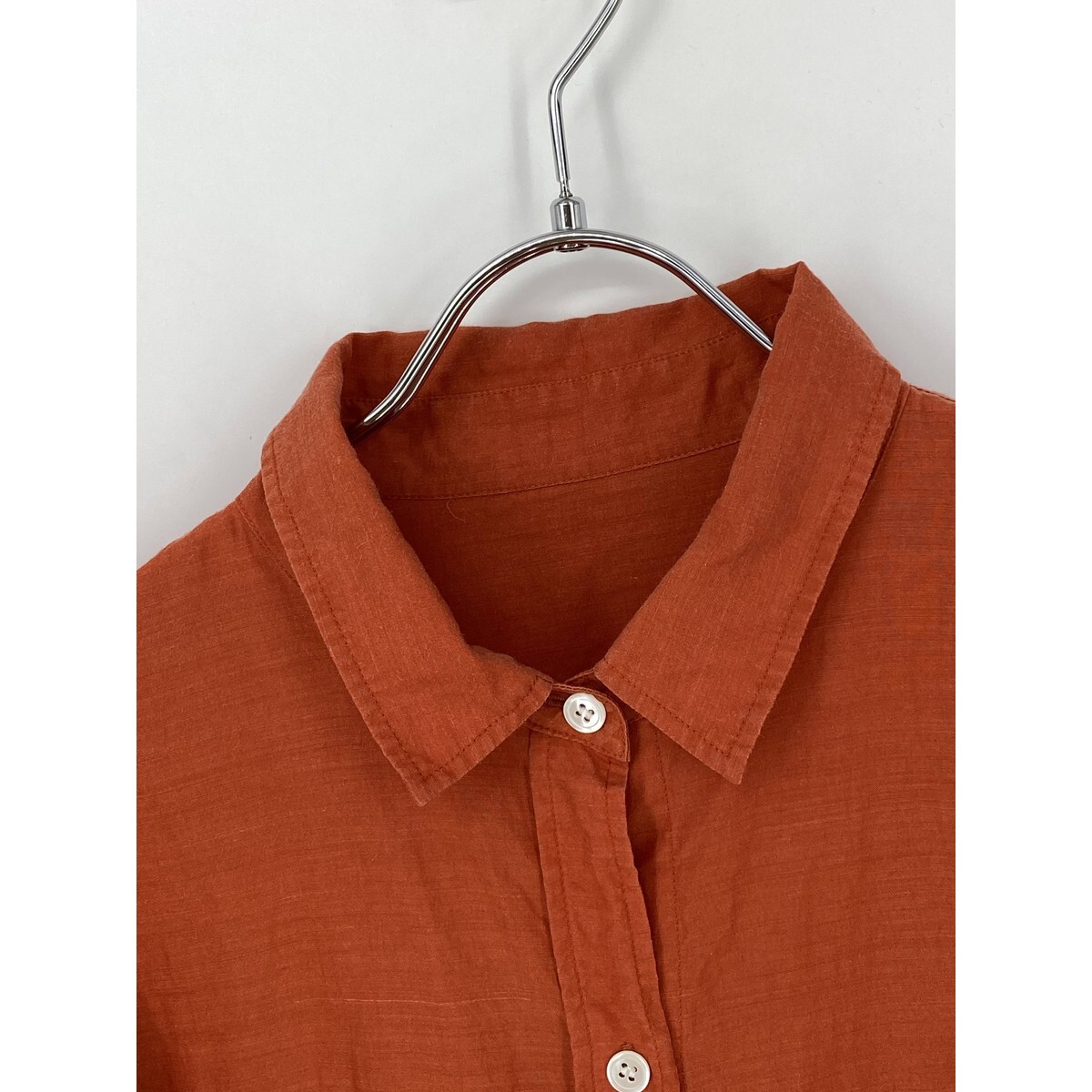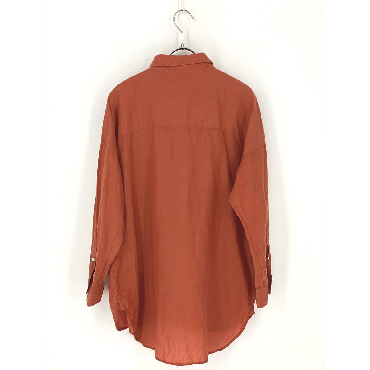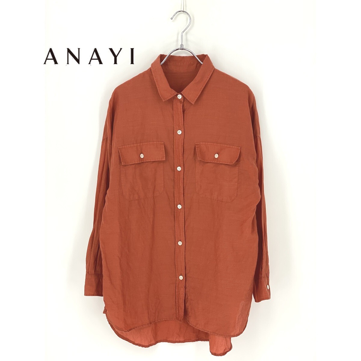 B0381/極美品 ANAYI アナイ リネン 長袖 オーバーサイズ ロング ドレス カッター Yシャツ ブラウス FREE オレンジ レディース チュニック