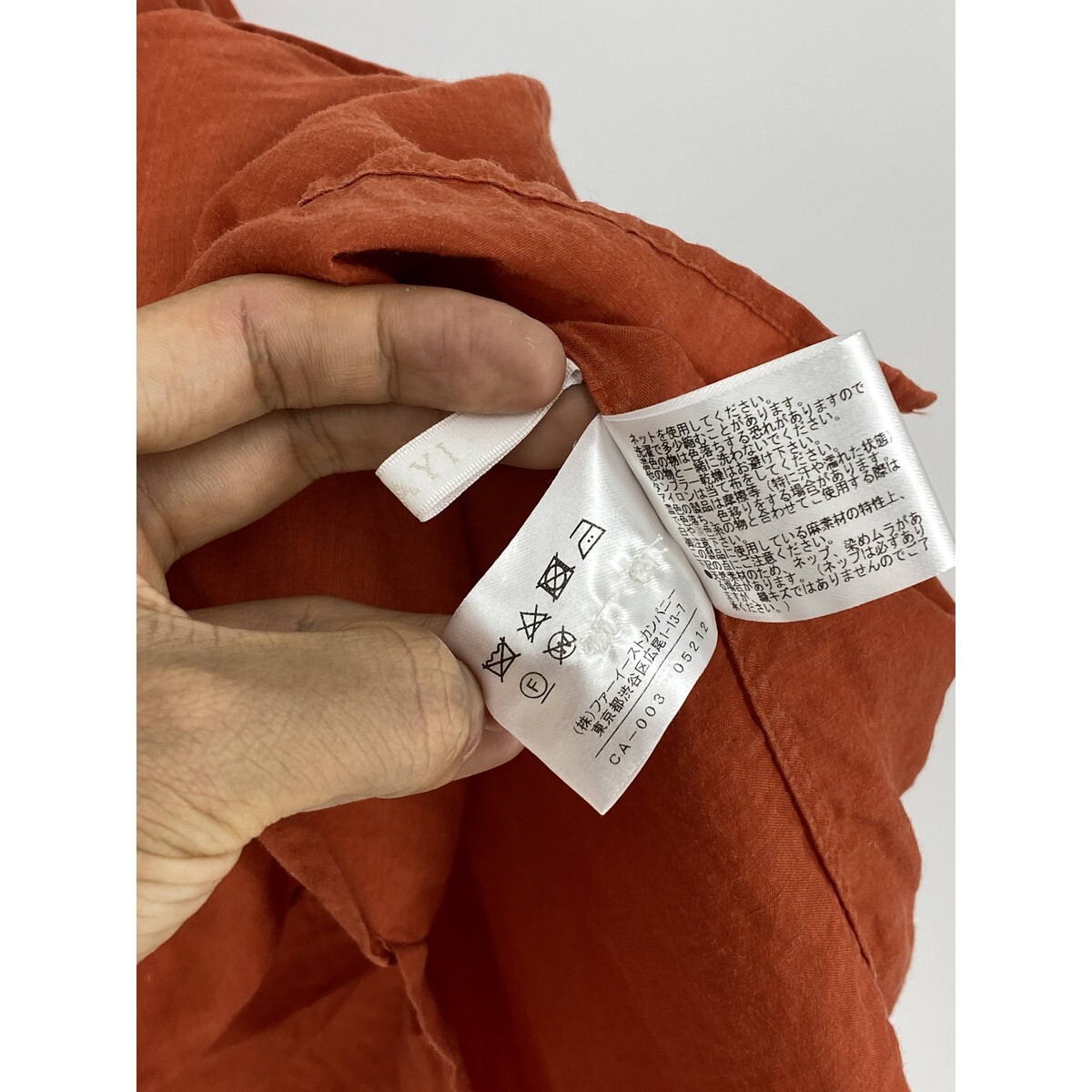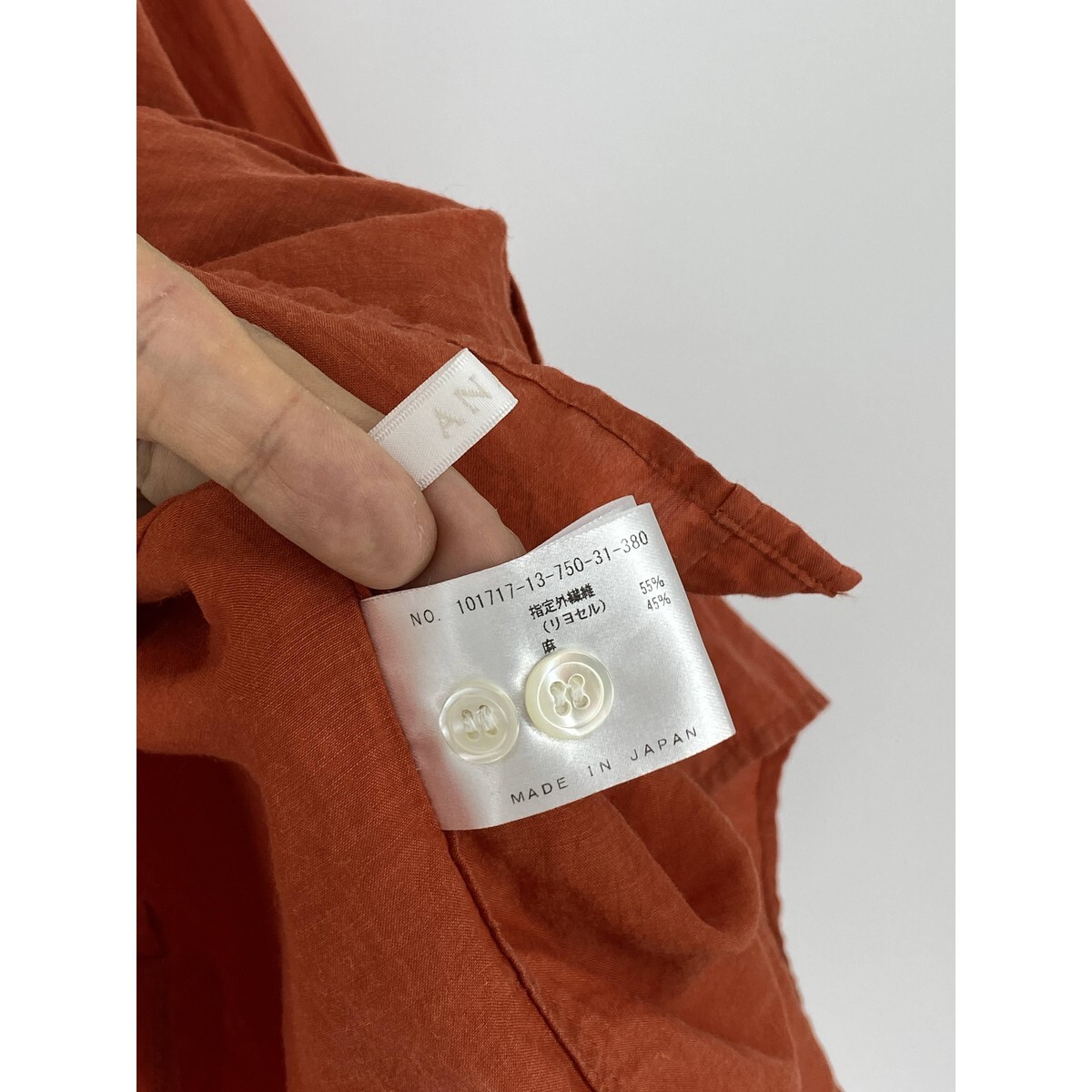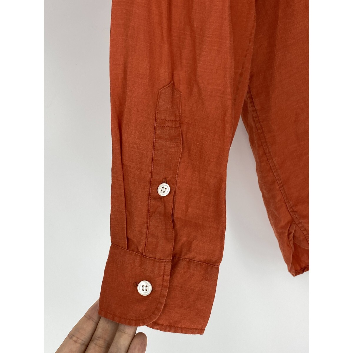 B0381/極美品 ANAYI アナイ リネン 長袖 オーバーサイズ ロング ドレス カッター Yシャツ ブラウス FREE オレンジ レディース チュニック
