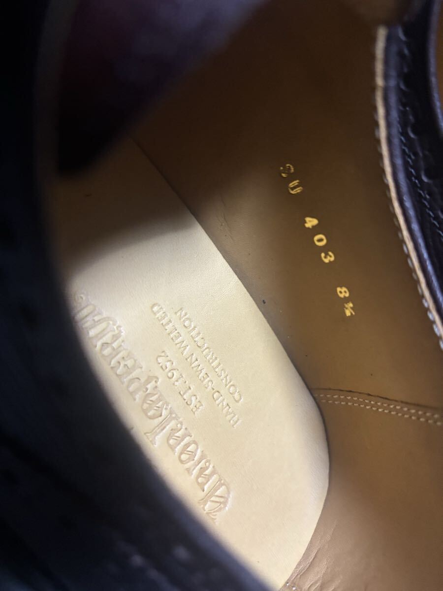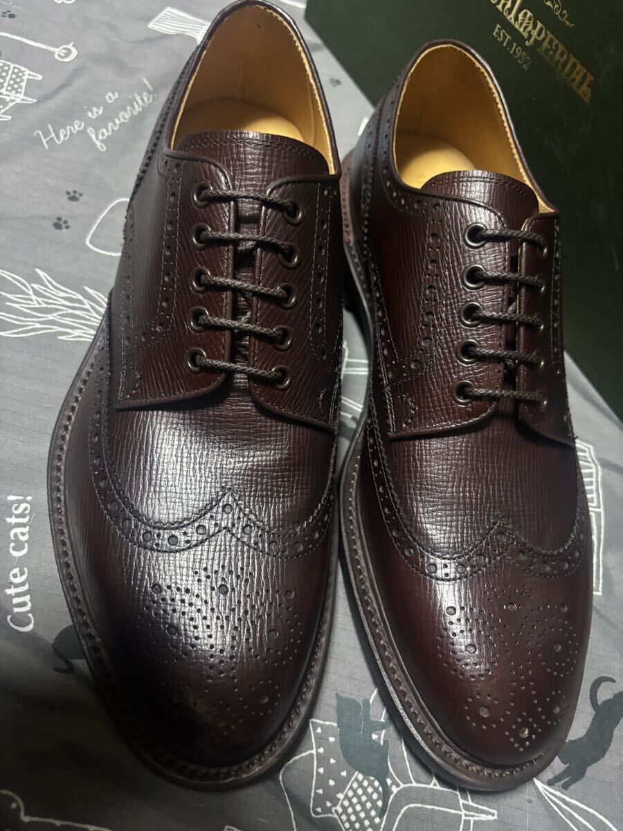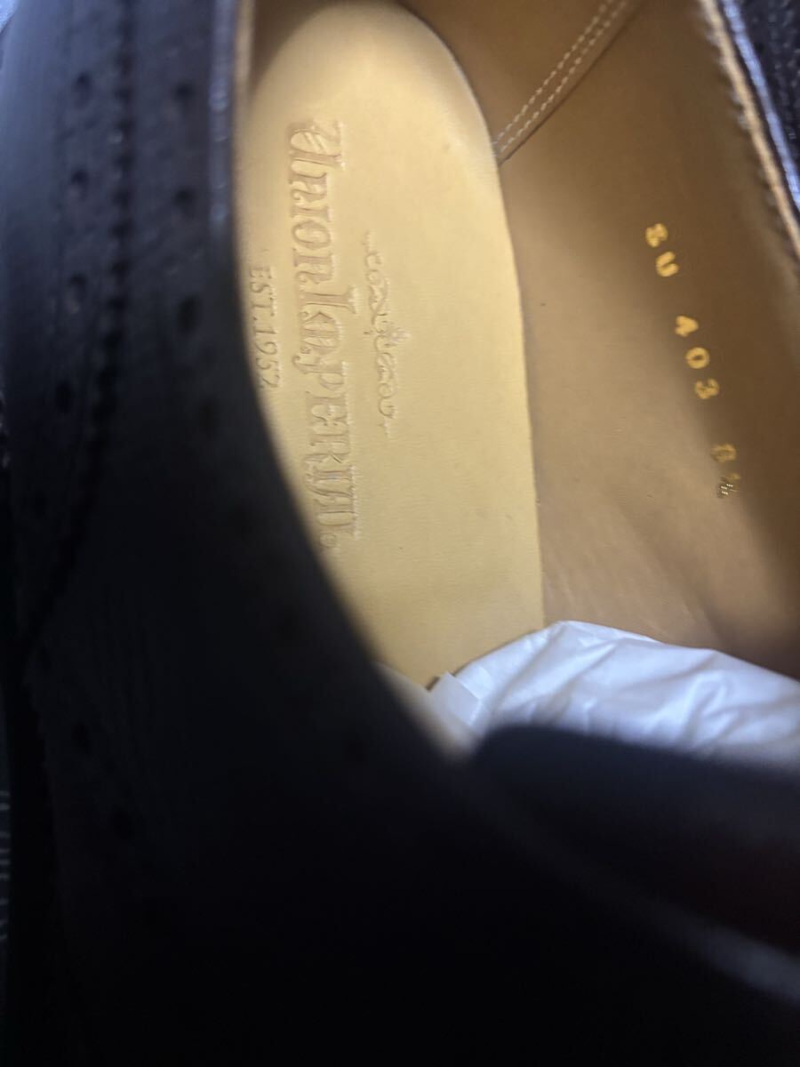 レザーにはデッドストックのアノネイ社のエンボスレザーを採用。アノネイ社で数年前に版板が破損した型番のため、今では入手することできないレザーになります。 型押レザーにありがちな堅さがなく、しなやかで足に馴染みやすいレザーです。