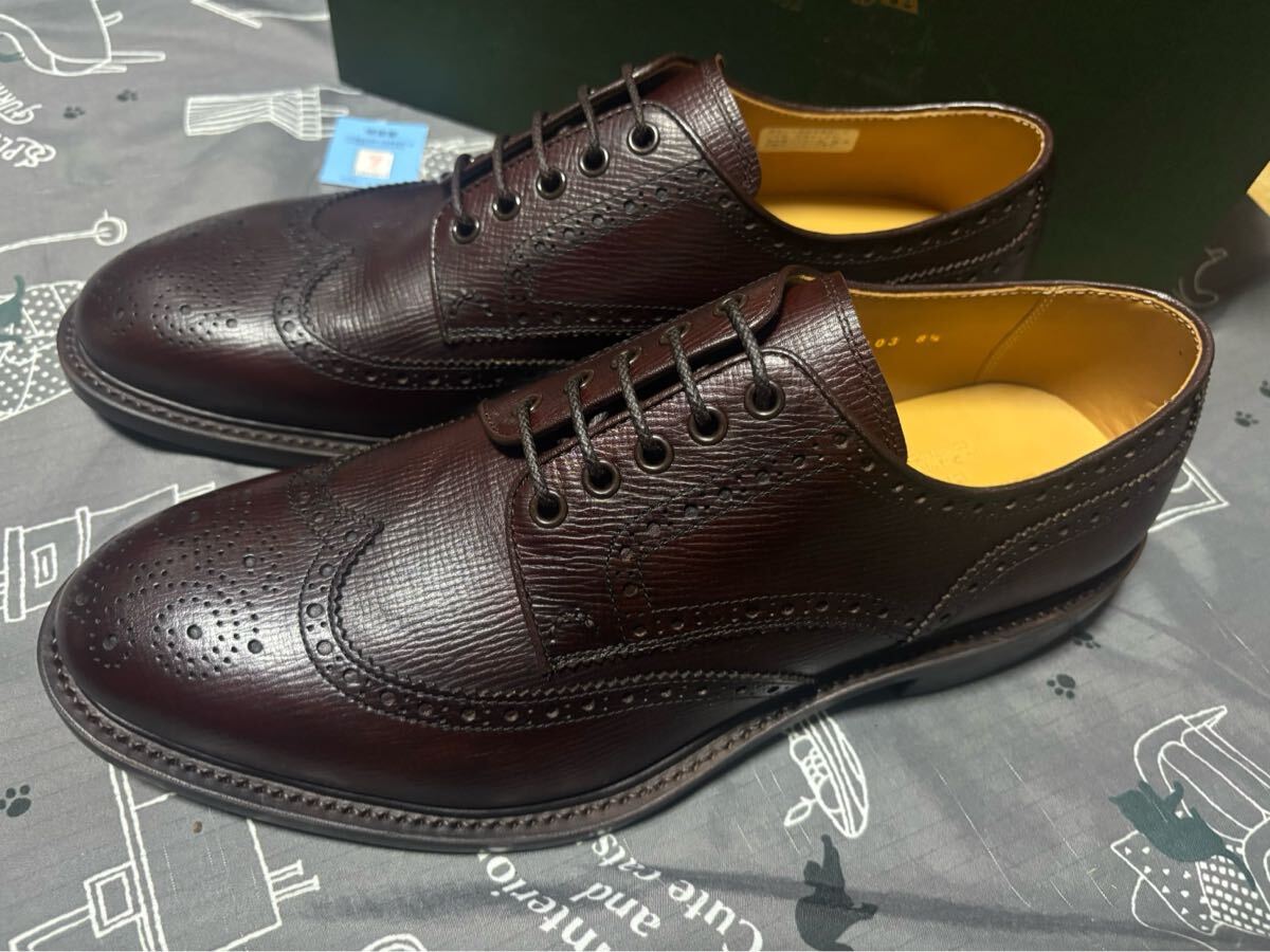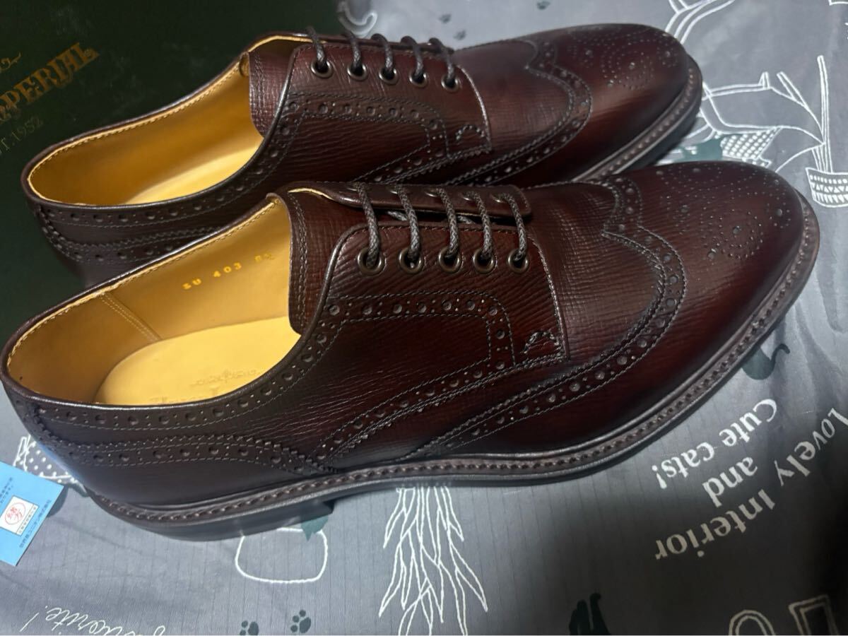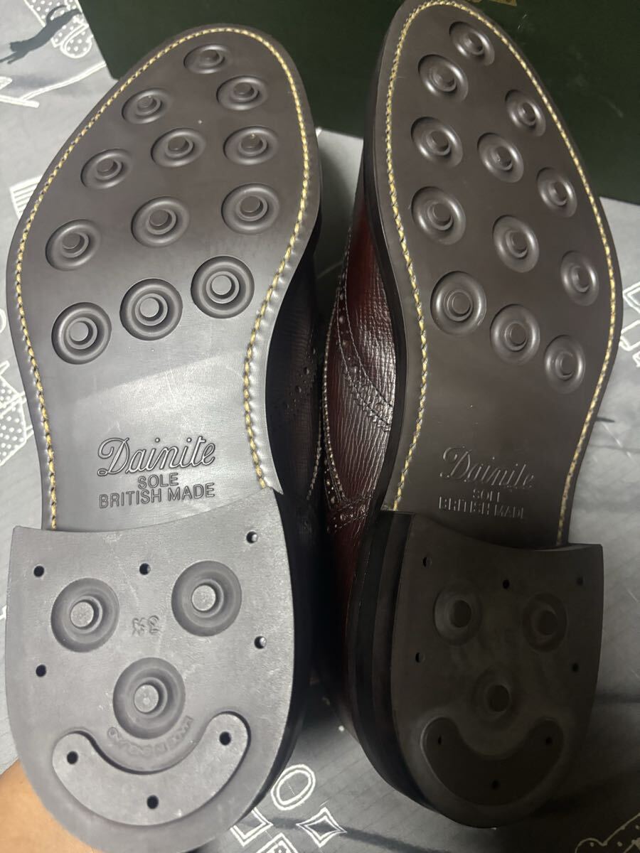 レザーにはデッドストックのアノネイ社のエンボスレザーを採用。アノネイ社で数年前に版板が破損した型番のため、今では入手することできないレザーになります。 型押レザーにありがちな堅さがなく、しなやかで足に馴染みやすいレザーです。
