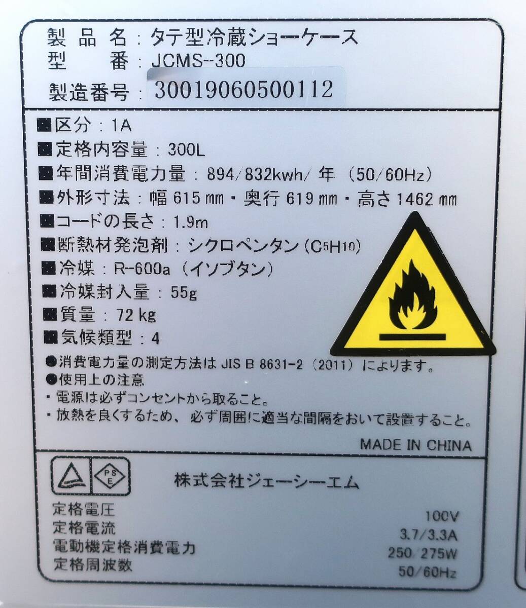 JCM《縦型冷蔵ショーケース》JCMS-300 300L | |||||||||