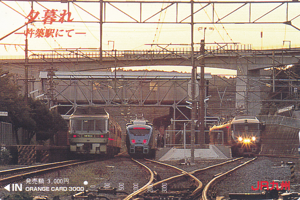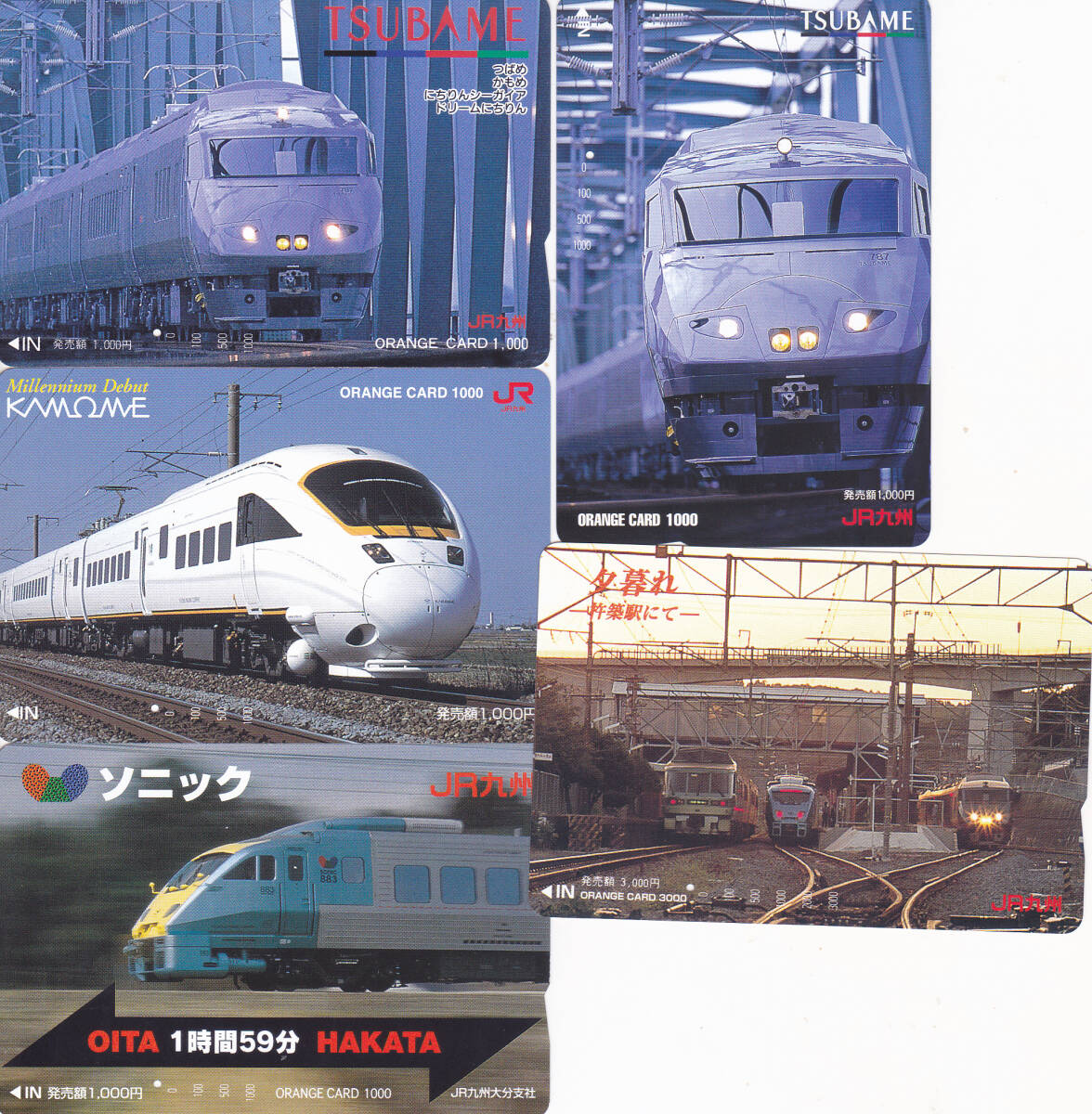 使用済オレンジカード JR九州 TSUBAME2種 KAMOME ソニック 夕暮れ杵築駅にて 1000円券4枚 3000円券1枚計5枚組 説明文参照