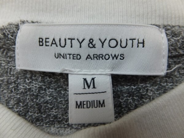 BEAUTY&YOUTH UNITED ARROWS ユナイテッドアローズ レディース ポケット付き パイル地 ボーダー Tシャツ M 白グレー です。