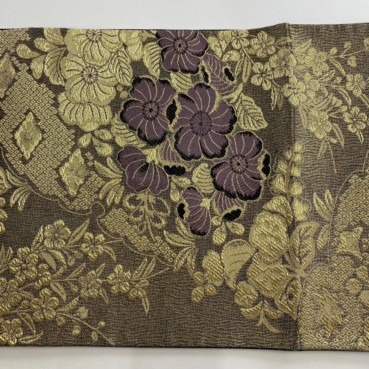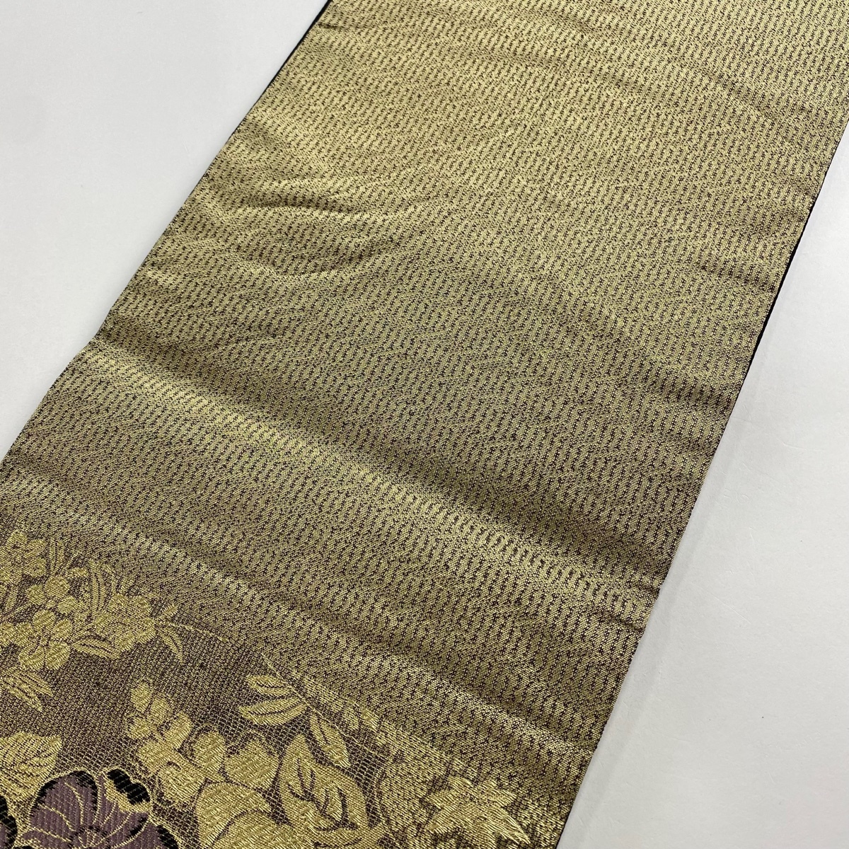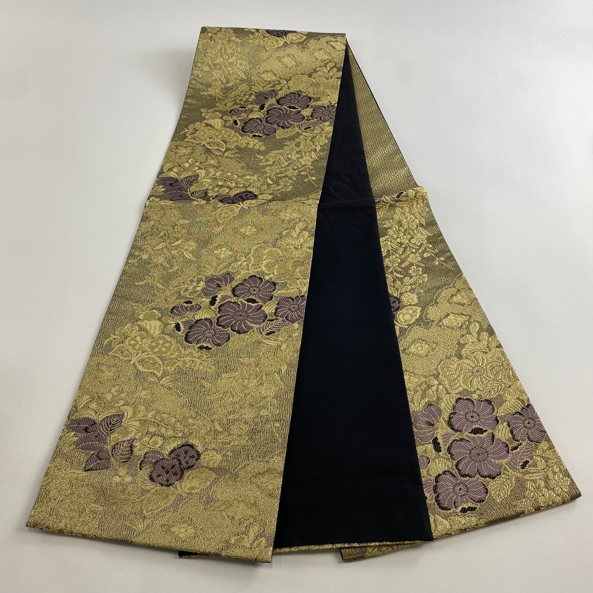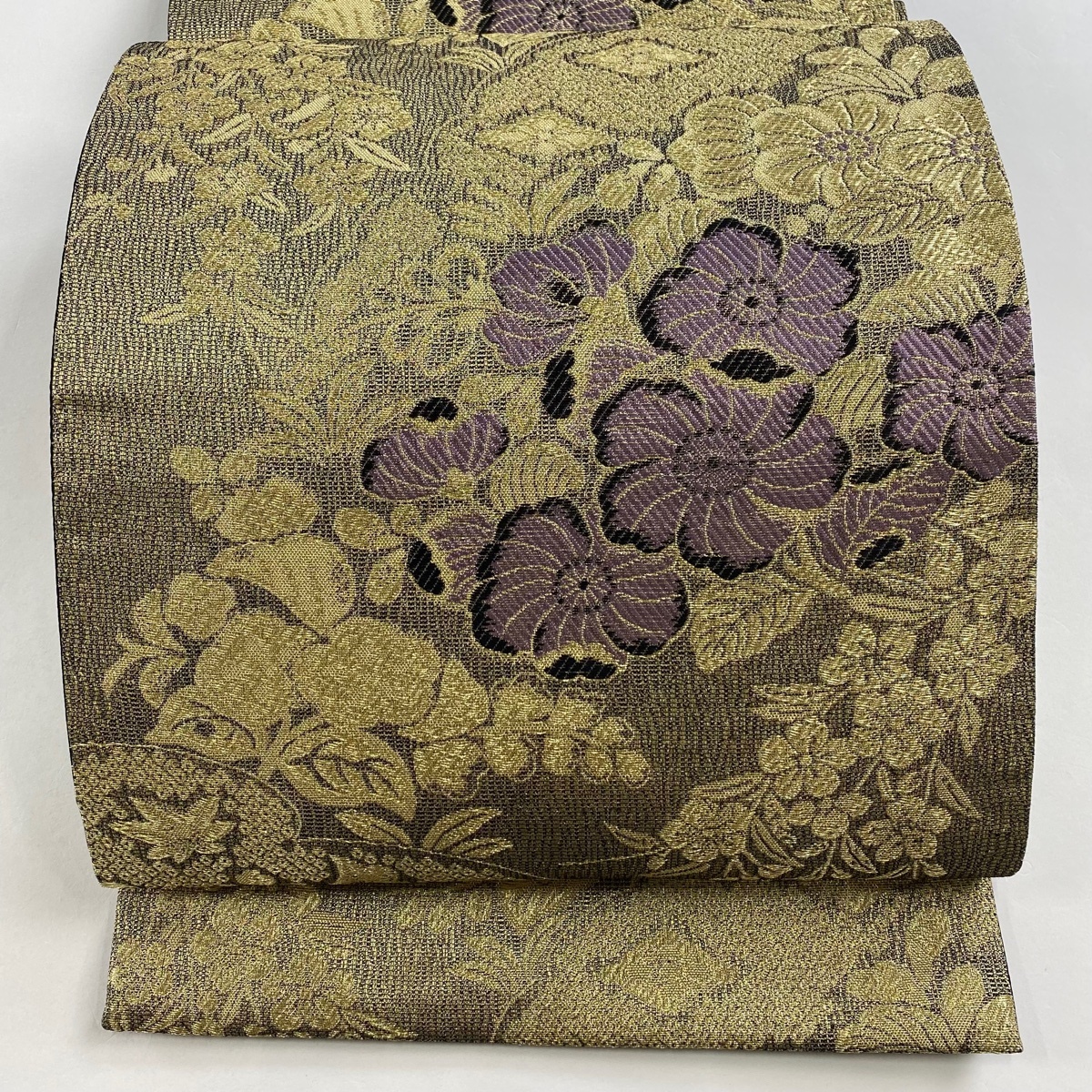 | 袋帯 美品 秀品 草花 雪輪 金糸 箔 金色 六通 正絹 【中古】 |