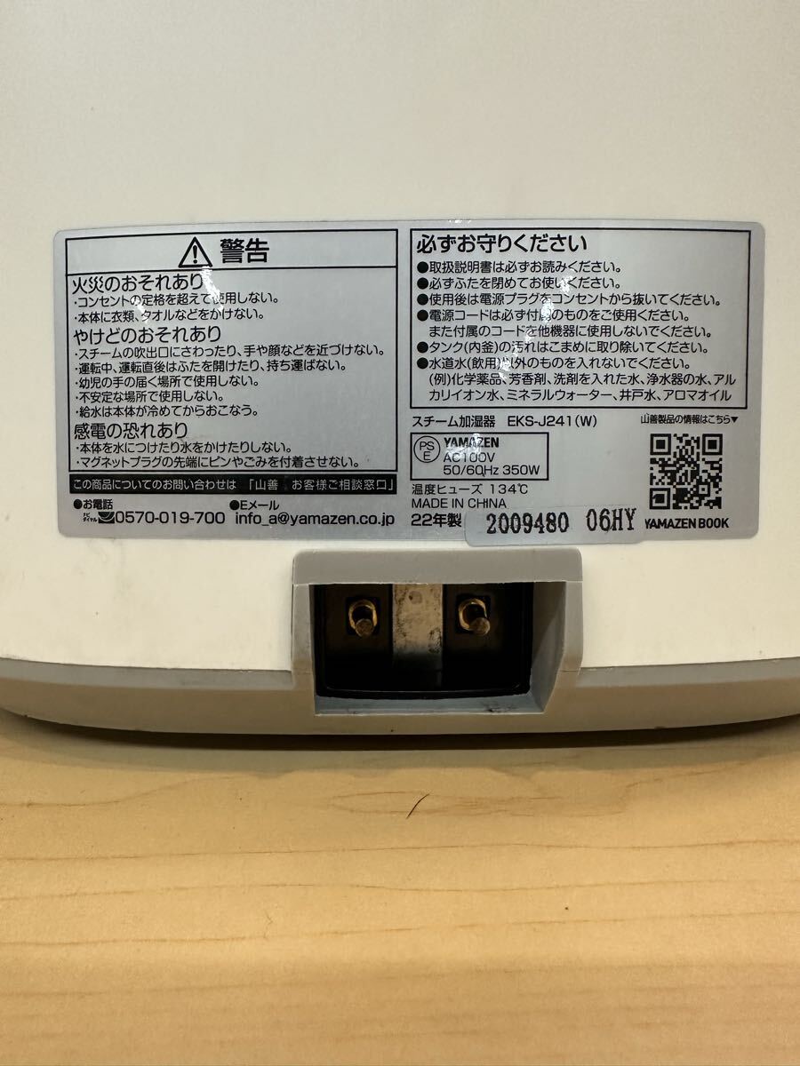 【10.NG】1円〜 YAMAZEN 山善 スチームキューブマグ 上部給水 スチーム式加湿器 ホワイト EKS-J241W 通電確認OK