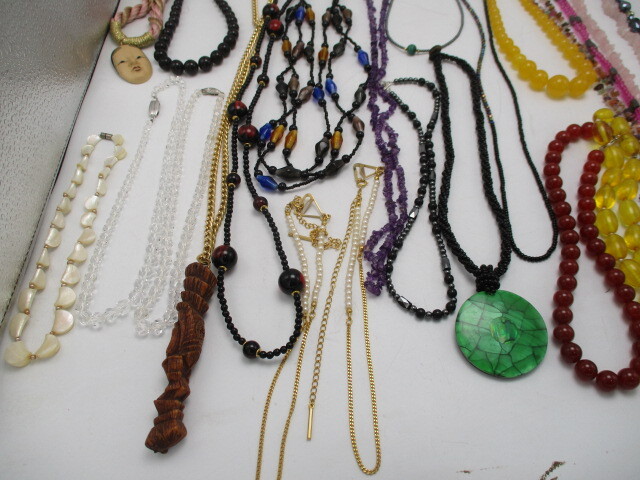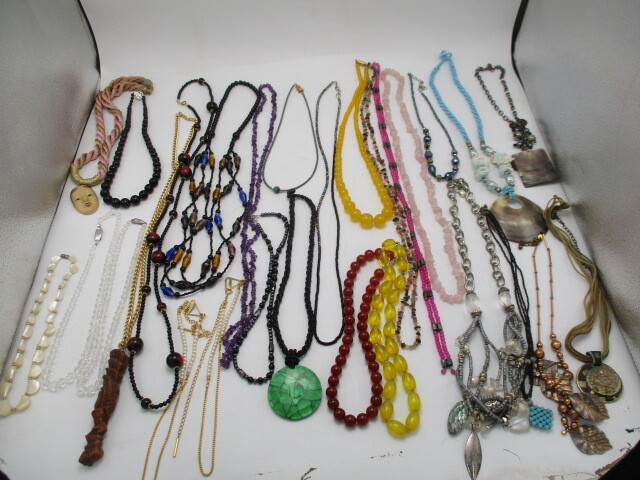 ★商品説明★ | ご覧いただき有難うございます。 レディースアクセサリー ネックレス 水晶 パール オニキス シェル ローズクオーツ他 色石等 28点セットです。 状態は比較的良いものが多いです。 画像にてご確認ください。 ご興味のある方、この機会に是非どうぞ。 ノークレーム・ノーリターンでお願いします。 | |