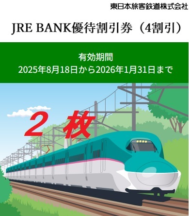 JRE BANK 優待割引券(JR東日本4割引) 2枚『取引ナビで通知』