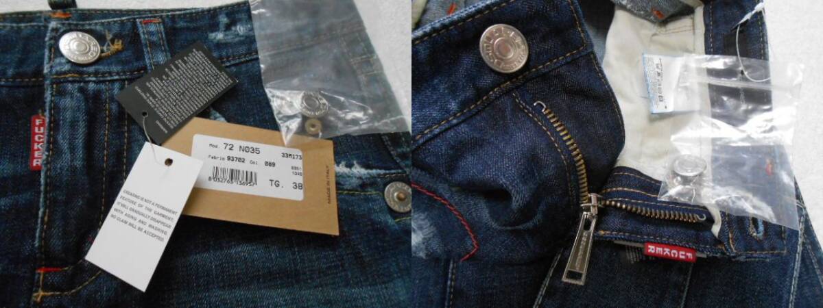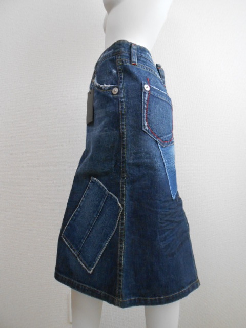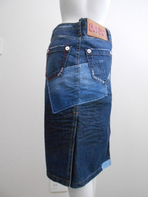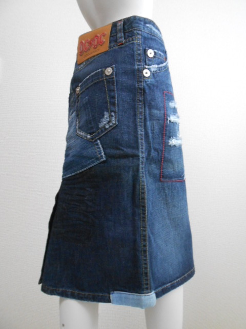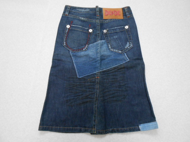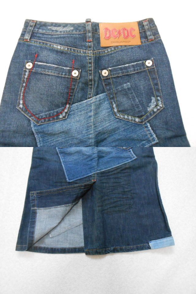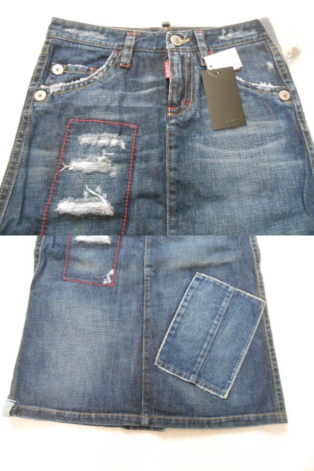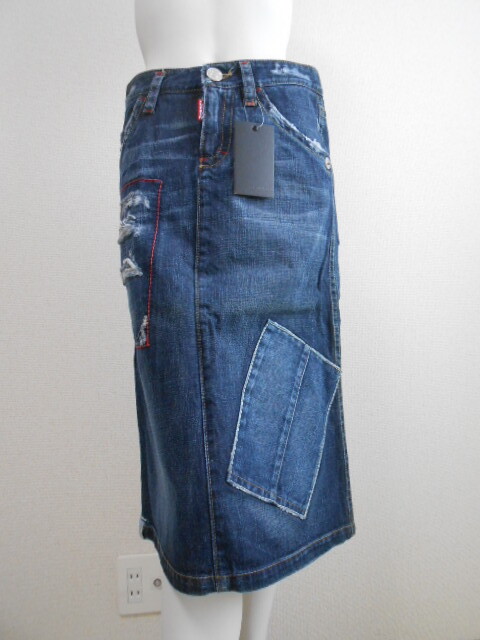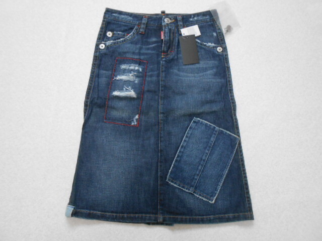 ●新品!タグ付き!本物 DSQUARED2 ディースクエアード2 デニム スカート ミディ丈 パッチワーク風 ダメージ ワッペン 加工 ITALY製