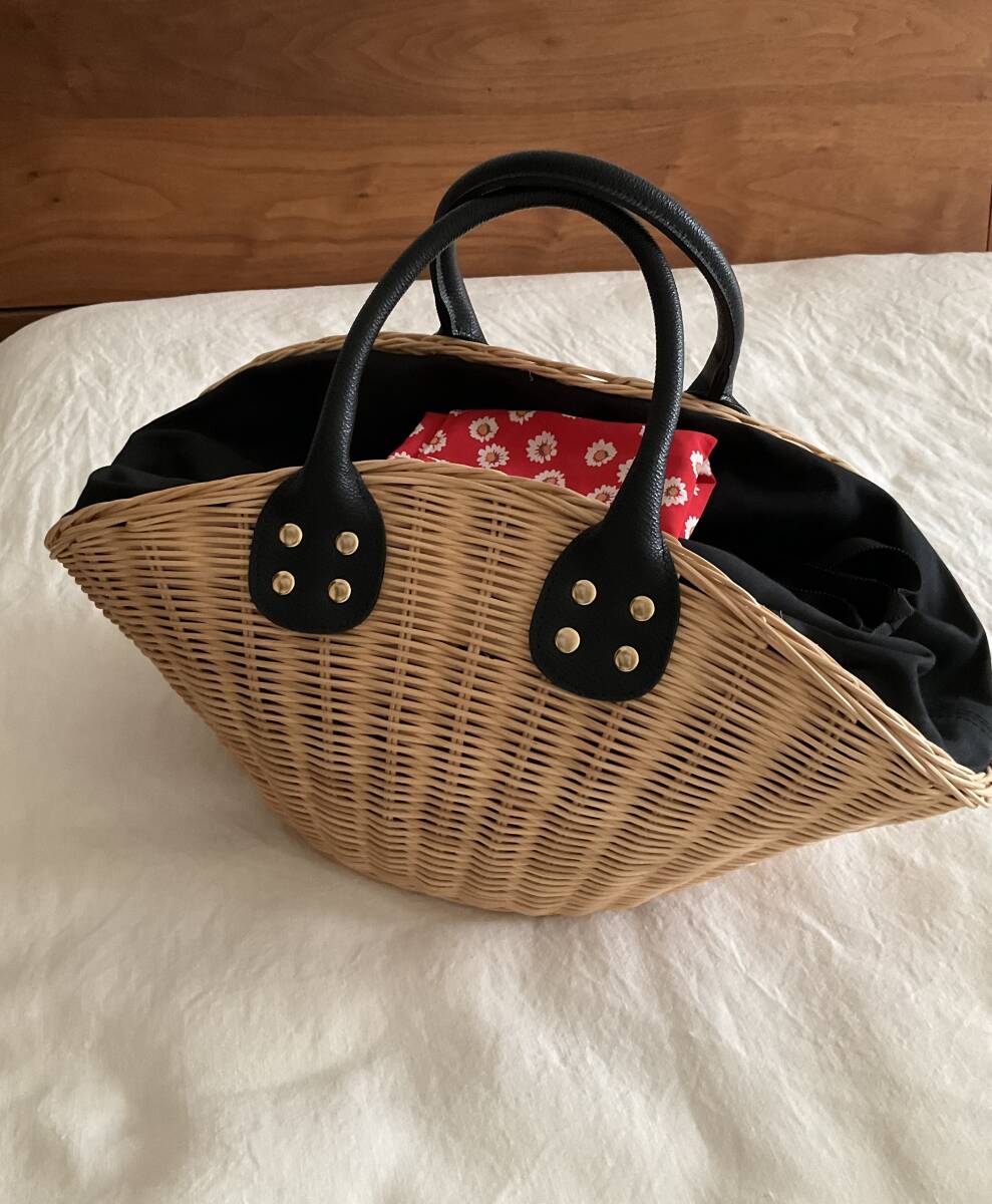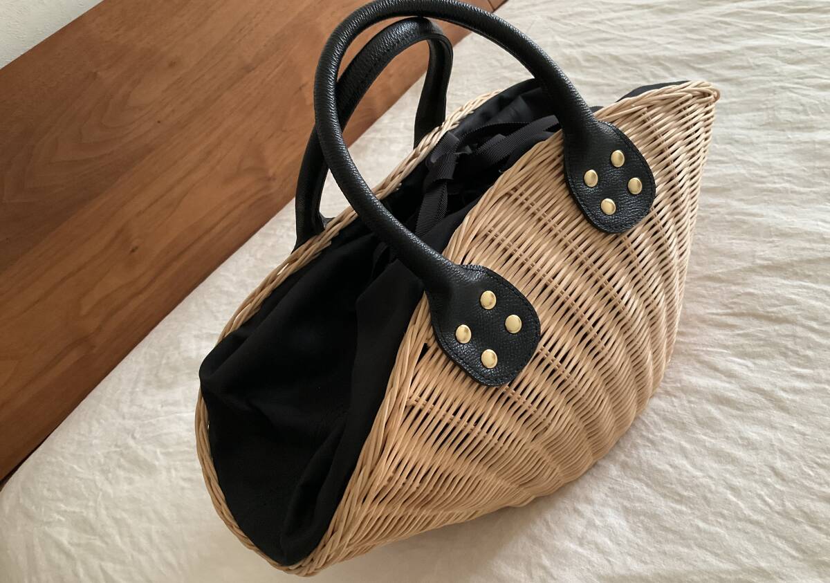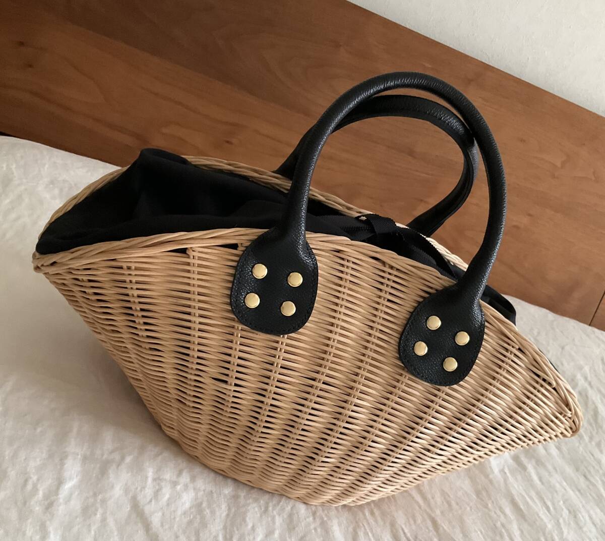 【素材】 カゴ部分 ラタン 綿   /   持ち手 ポリ塩化ビニール