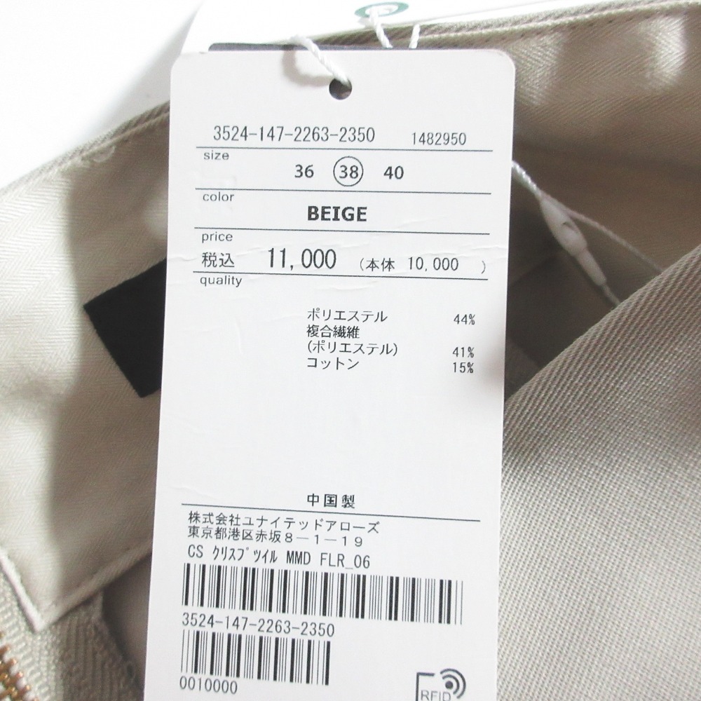 未使用 グリーンレーベルリラクシング ユナイテッドアローズ クリスプツイルフレアスカート 3524-147-2263 サイズ38 ベージュ