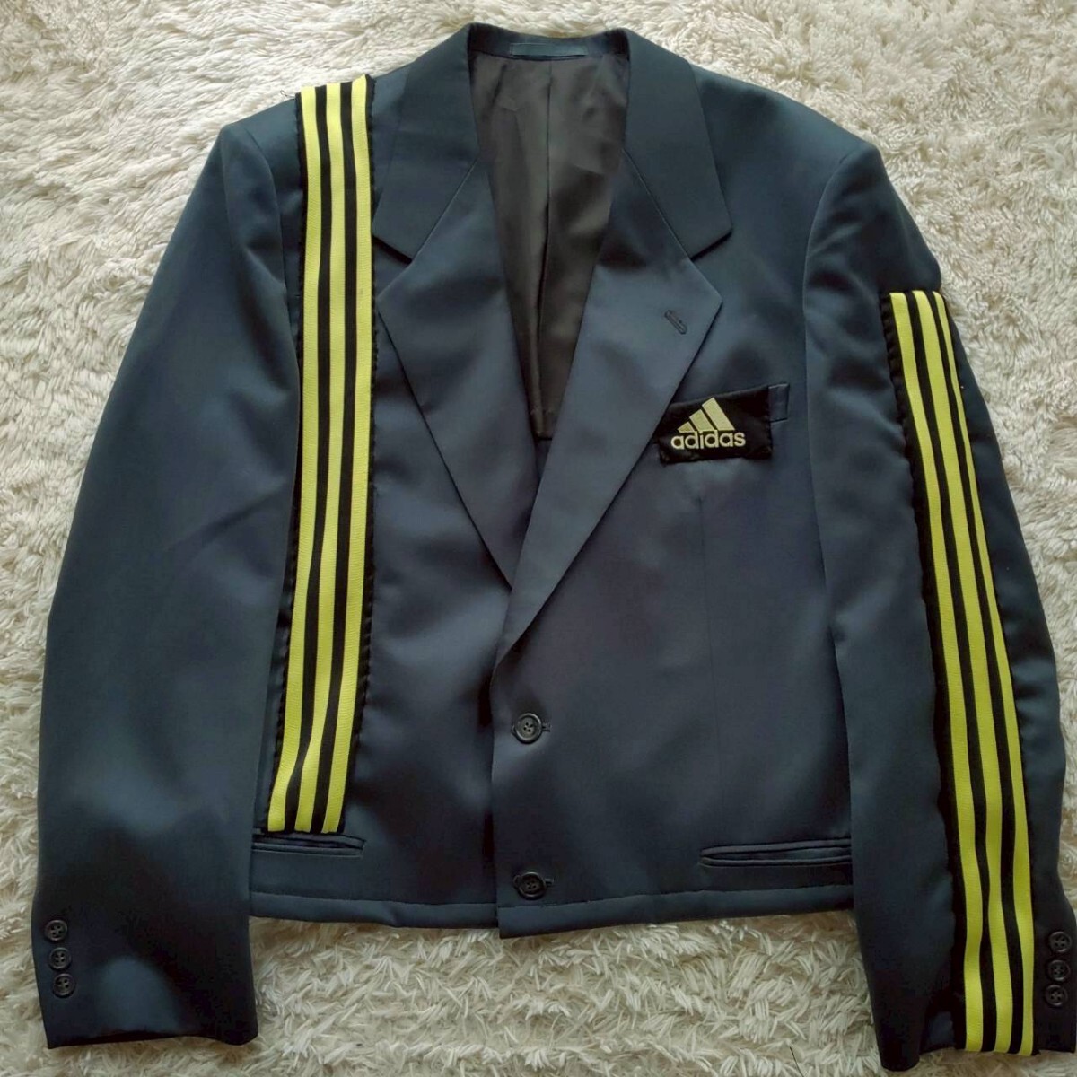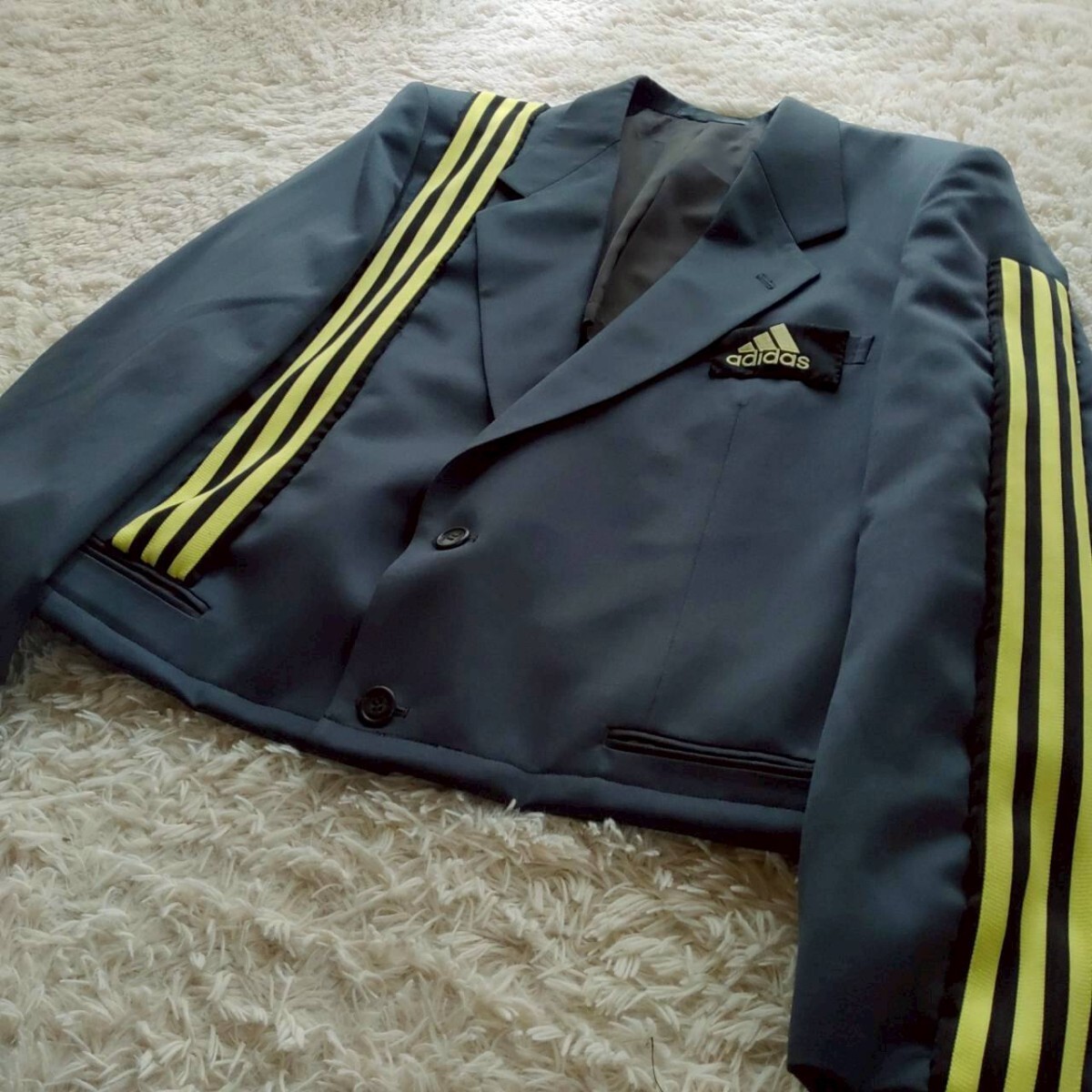 Remake adidas×Suits アデイダス ジャージ リメイク 再構築 ドッキング 短丈 テーラードジャケット スーツ セットアップ 上下 トラックジャケット 結婚式 成人式 モード系 Y2K
