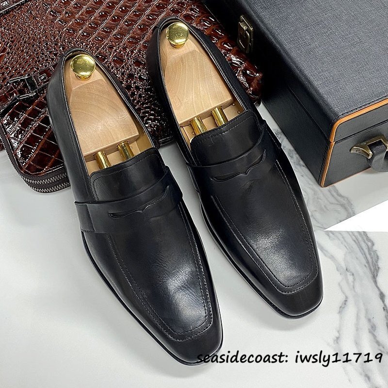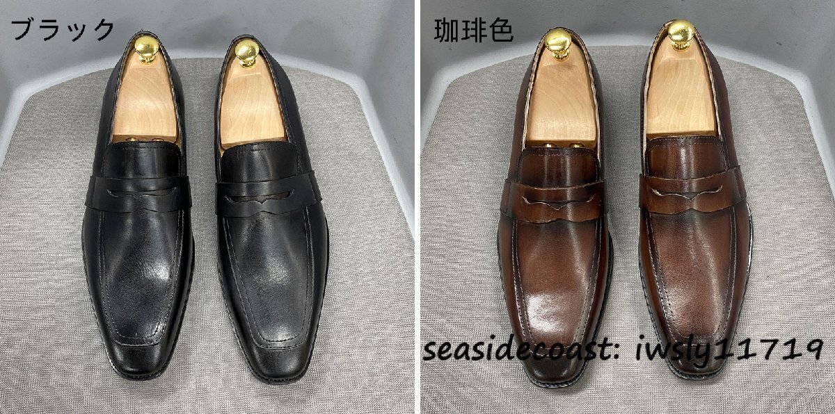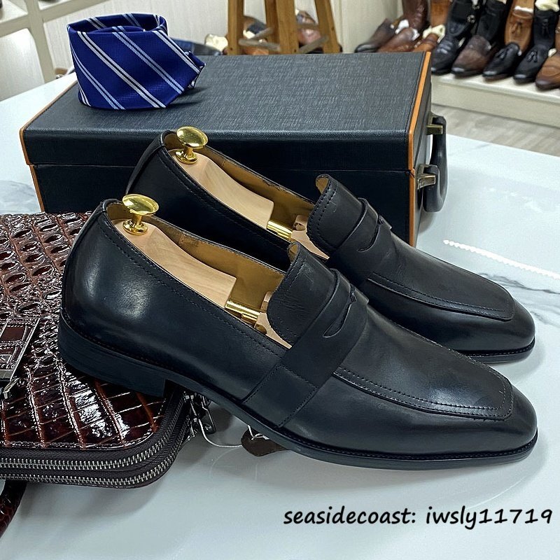 超希少★定価10万 メンズシューズ 新品 ビジネスシューズ 職人手作り 手塗り上げ 本革 レザーシューズ 牛革 紳士靴 革靴 ブラック 25.0cm