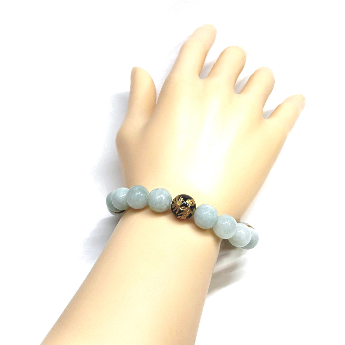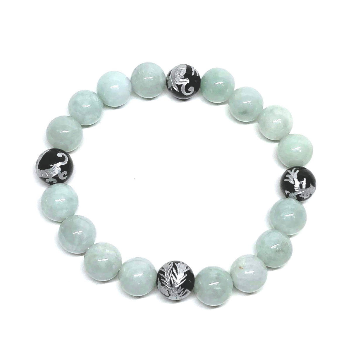 10mm 四神獣銀彫オニキス×ビルマ翡翠 パワーストーン ブレスレット天然石 運気上昇 開運 幸運 恋愛運 青龍 白虎 玄武 朱雀 ☆