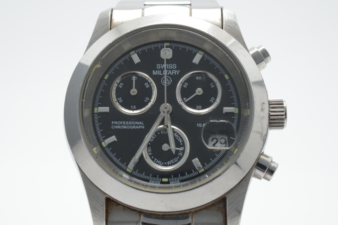 SWISS MILITARY スイスミリタリー HANOWA ラウンド 腕時計 メンズ 3針 クロノグラフ ブラック シルバー 6-5073