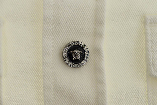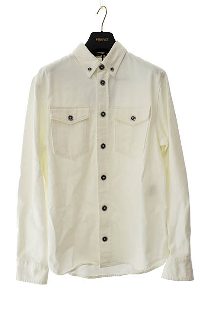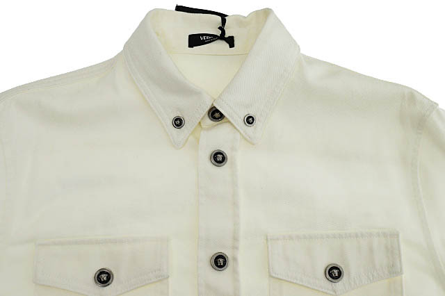 ヴェルサーチ ヴェルサーチェ VERSACE 25年製 メデューサ ボタン コットン デニム 長袖 シャツ ジャケット 1013887 46 白ホワイト■251007 メンズ