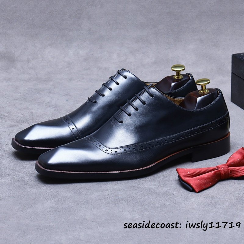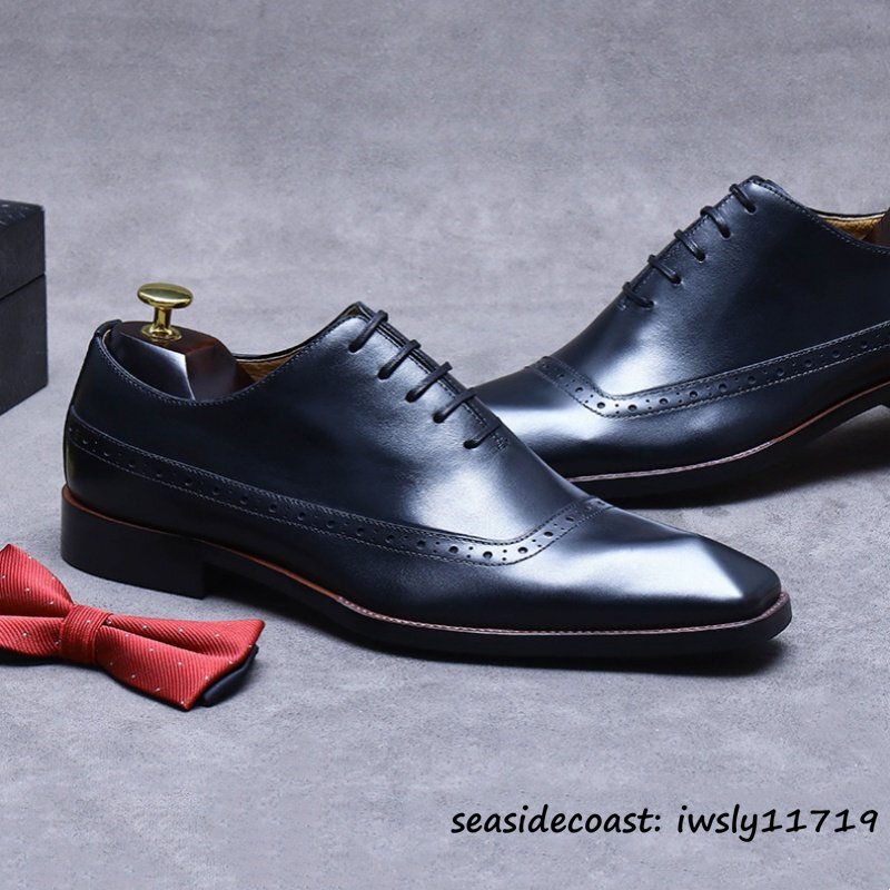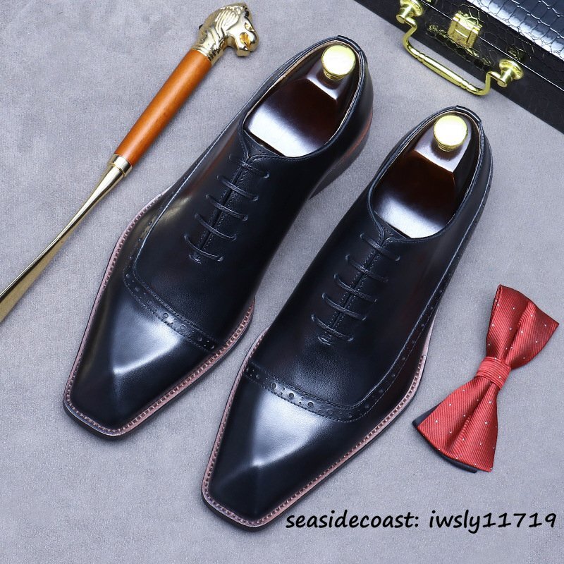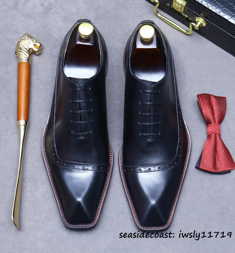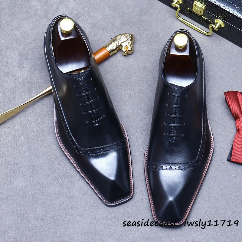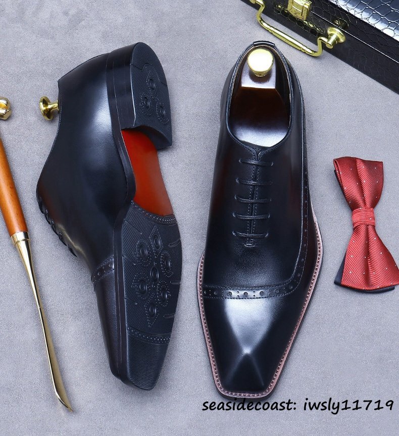 超希少★ビジネスシューズ メンズ 革靴 本革 レザーシューズ 職人手作り 彫り 紳士靴 冠婚葬祭 高級牛革 フォーマル 新品 ブラック 24.5cm