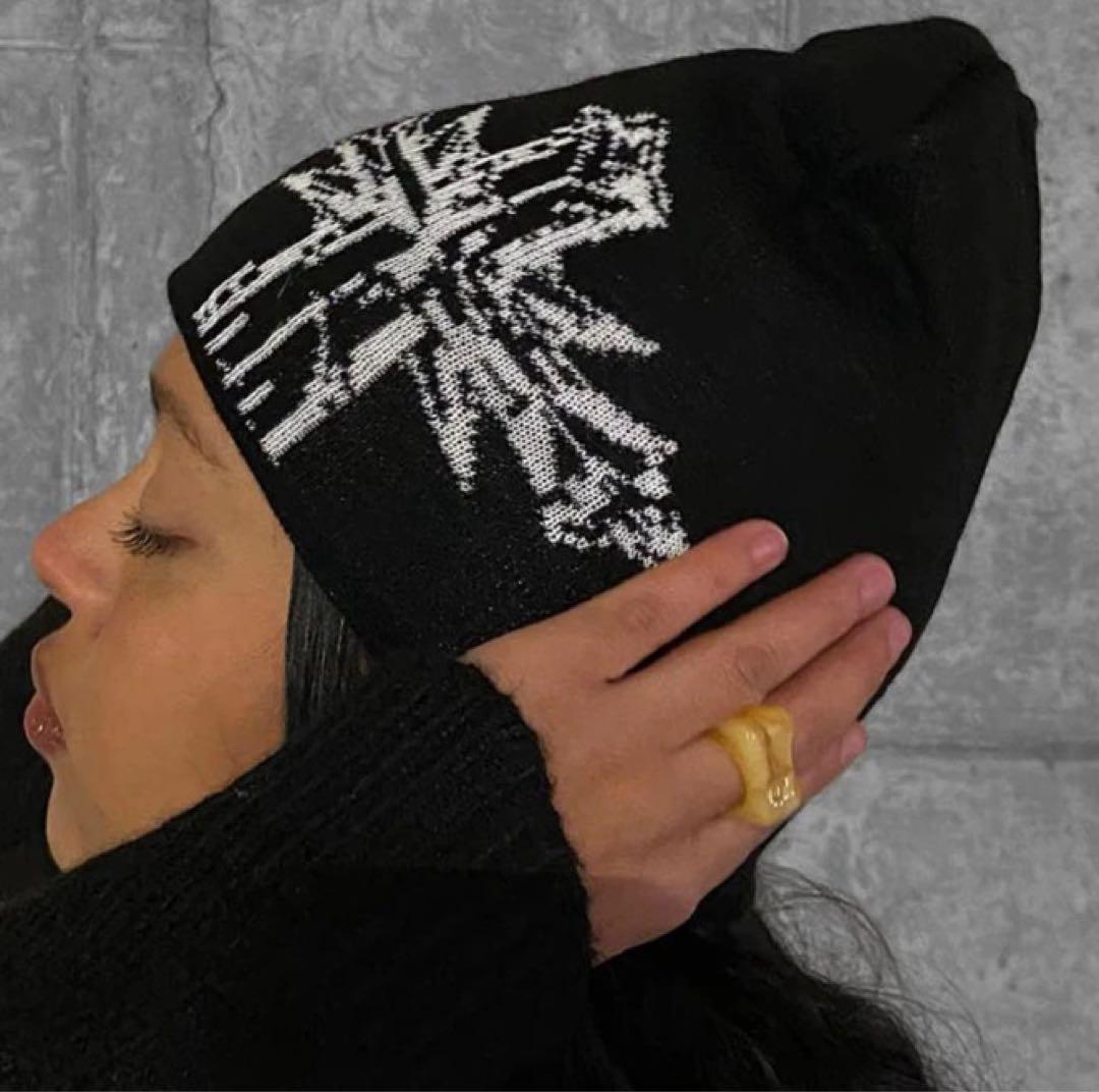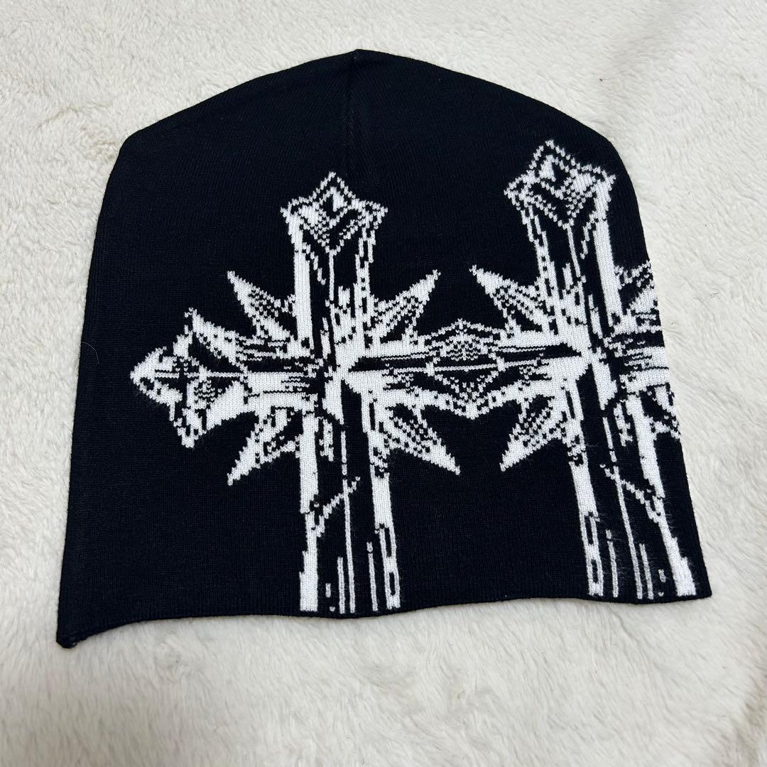 ビーニー帽 クロスデザイン ブラック 黒 Y2K グランジ パンク 平成