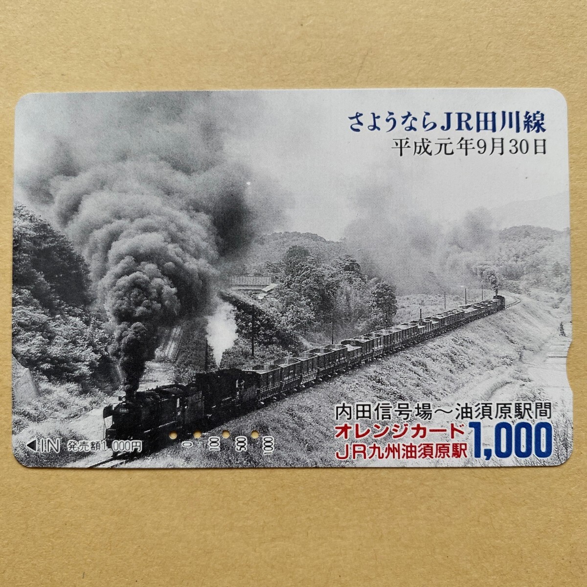【使用済】 SLオレンジカード JR九州 さようならJR田川線 平成元年9月30日 内田信号場~油須原駅間