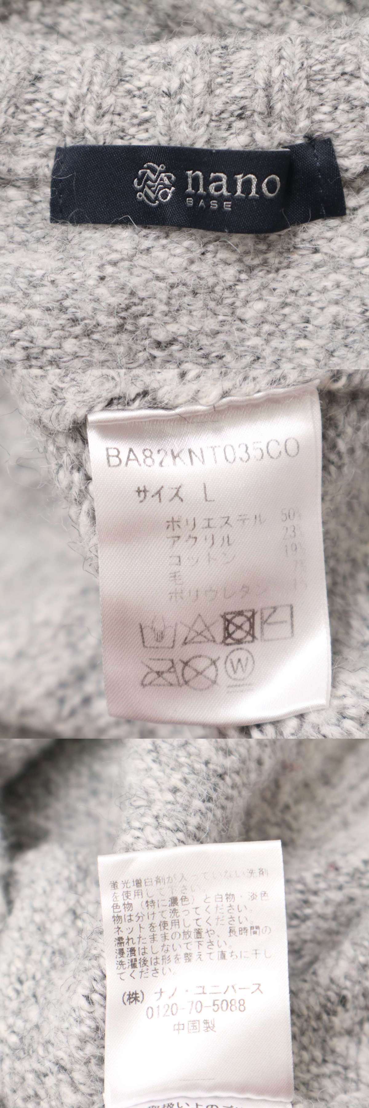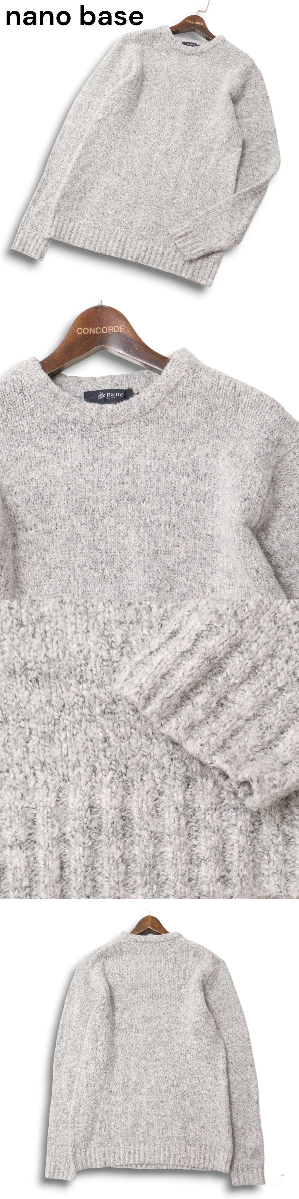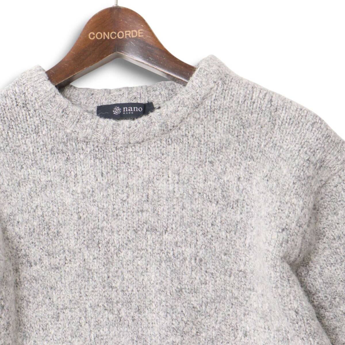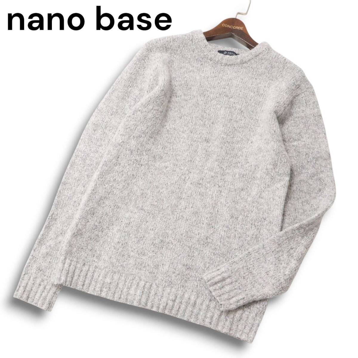 nano base ナノユニバース 秋冬 ウール混★ クルーネック ニット セーター Sz.L メンズ 灰 グレー