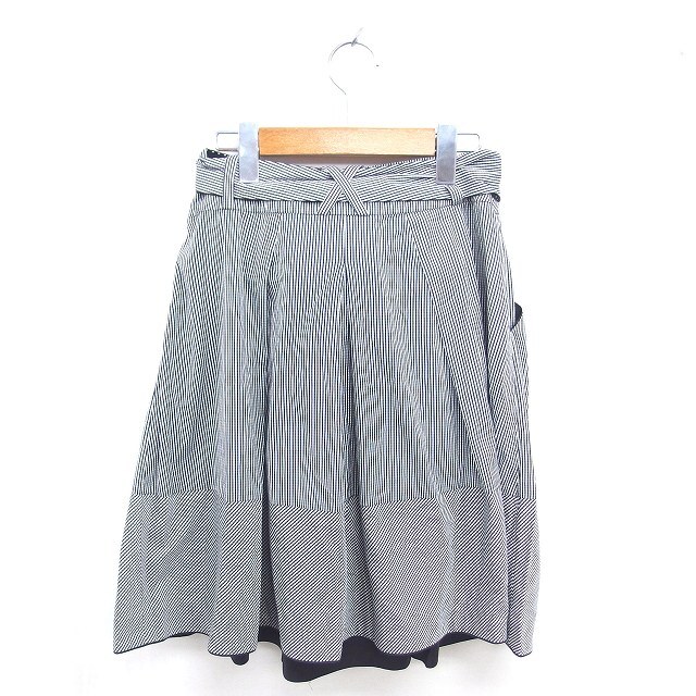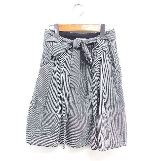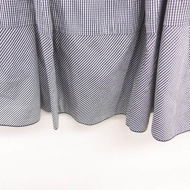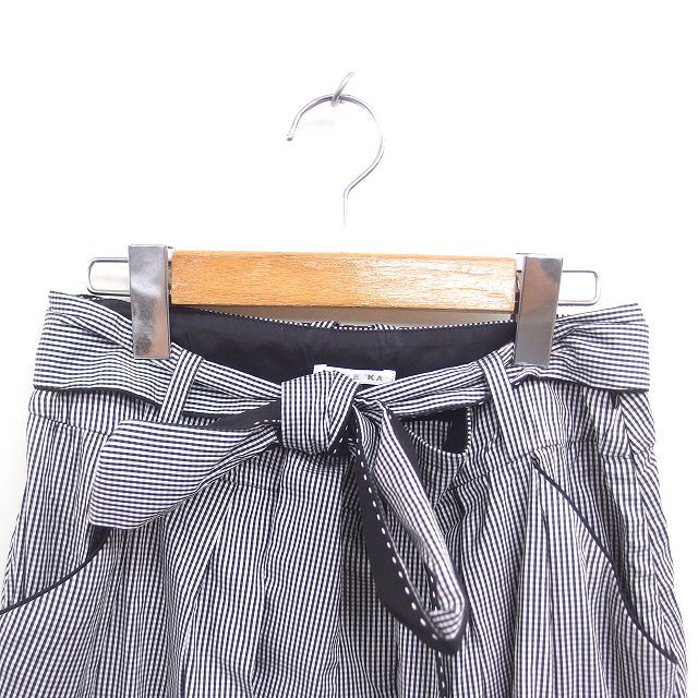ポールカ PAULE KA フレア スカート ひざ丈 ギンガムチェック ウエストリボン 薄手 38 ホワイト ブラック 白 黒 /TT レディース