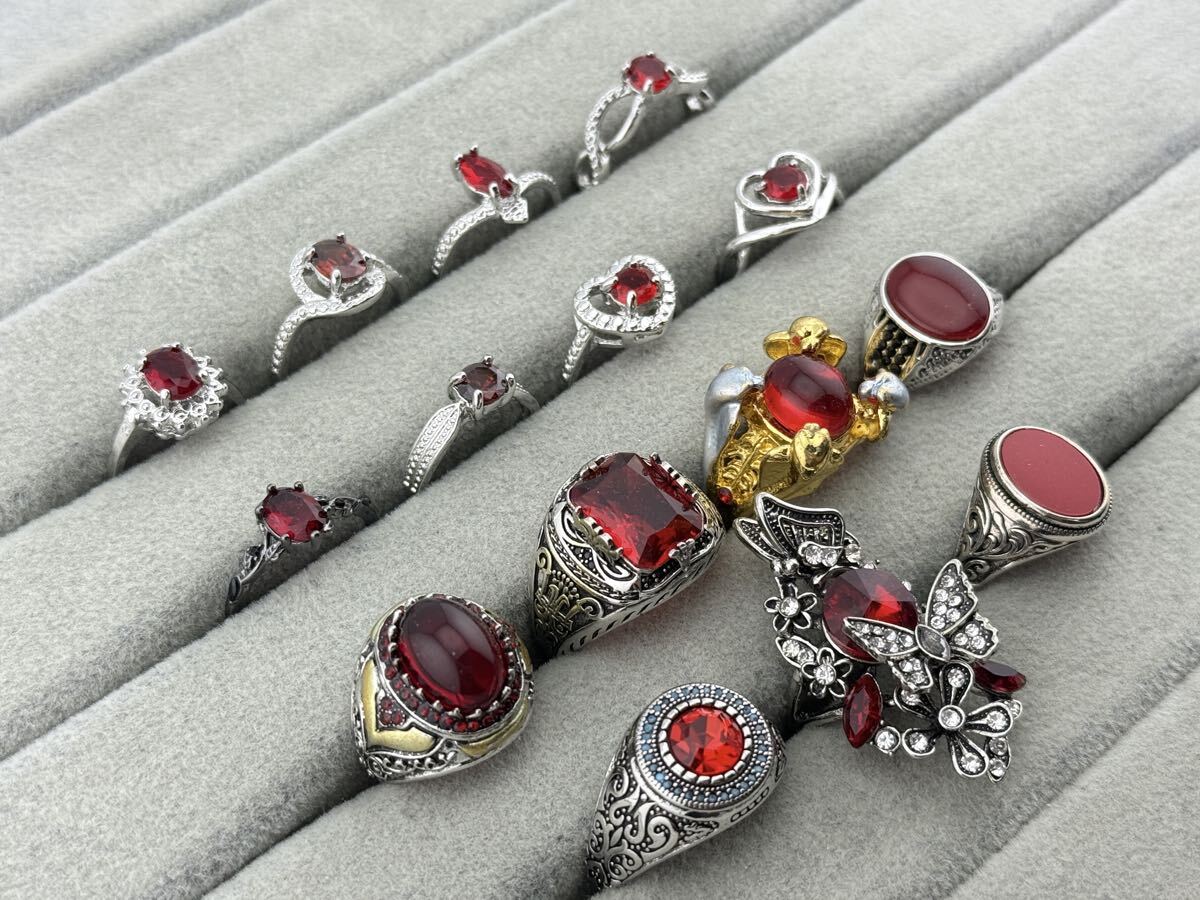 天然石、ジルコニア 、カラーストーン、色ガラス、ゴールド、シルバー、ステンレス、真鍮など様々です。