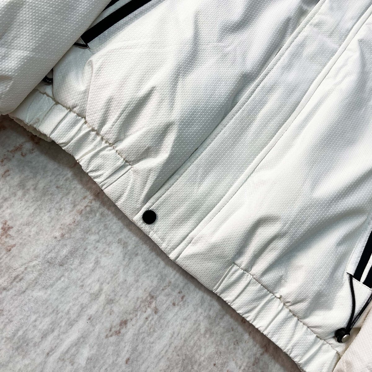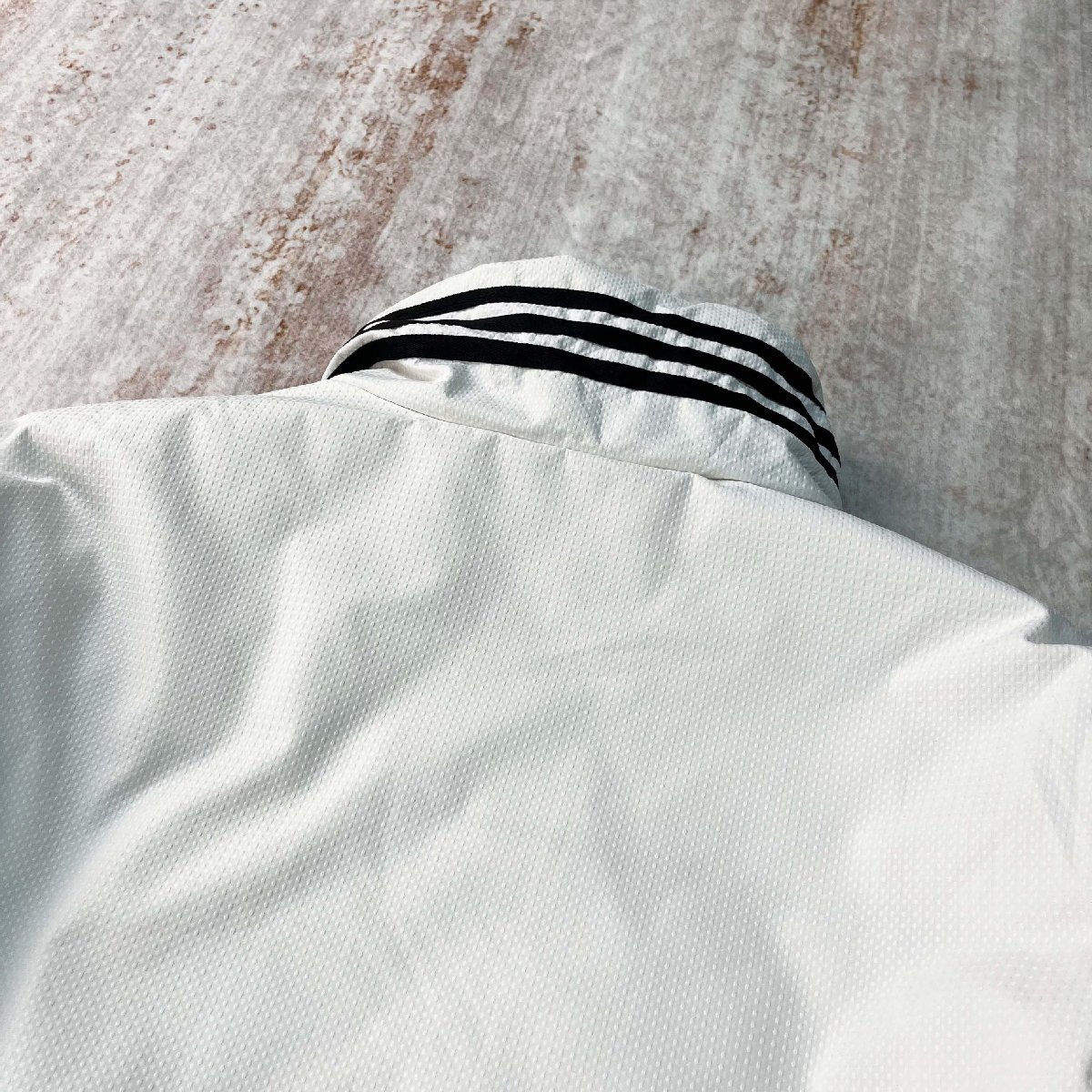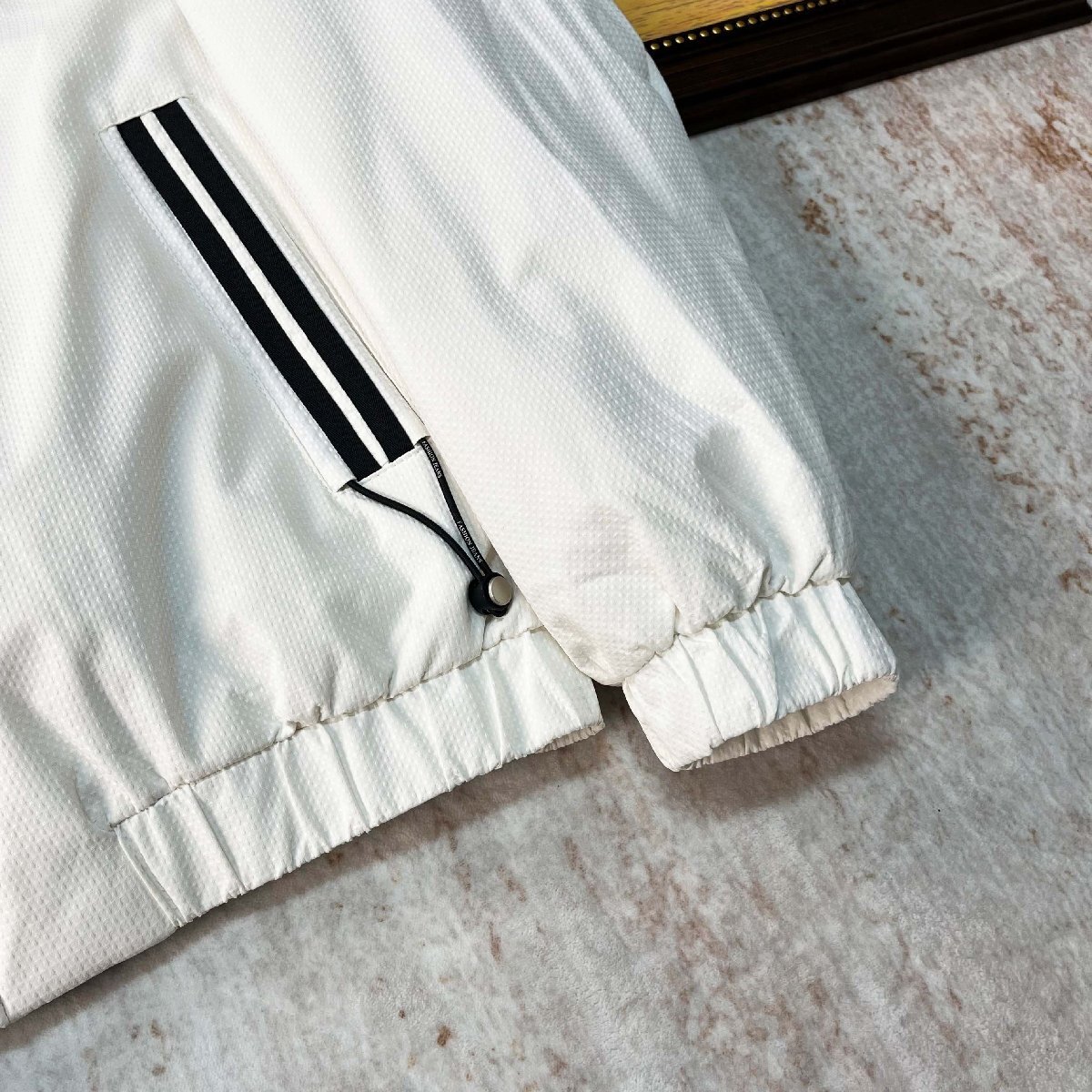 スタンドカラーに3本のラインをあしらったデザインで、首元をしっかりと覆いながらもスポーティーな印象を与えます。左胸と左袖口のロゴがアメカジ感をプラス。裾と袖口には伸縮性のあるゴム仕様で、冷気の侵入を防ぎながら、動きやすさも確保。両サイドには実用的なポケットも備えており、デザイン性と機能性を兼ね備えた仕上がりです。