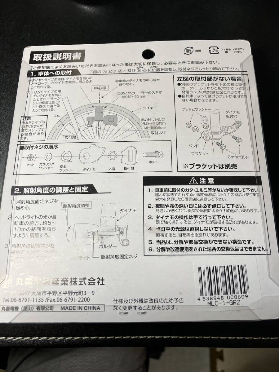 ☆ 丸善 MAG BOY 自転車用発電ランプ LED ライト MLC-1-GR2 サイクル ライト 未開封 です。