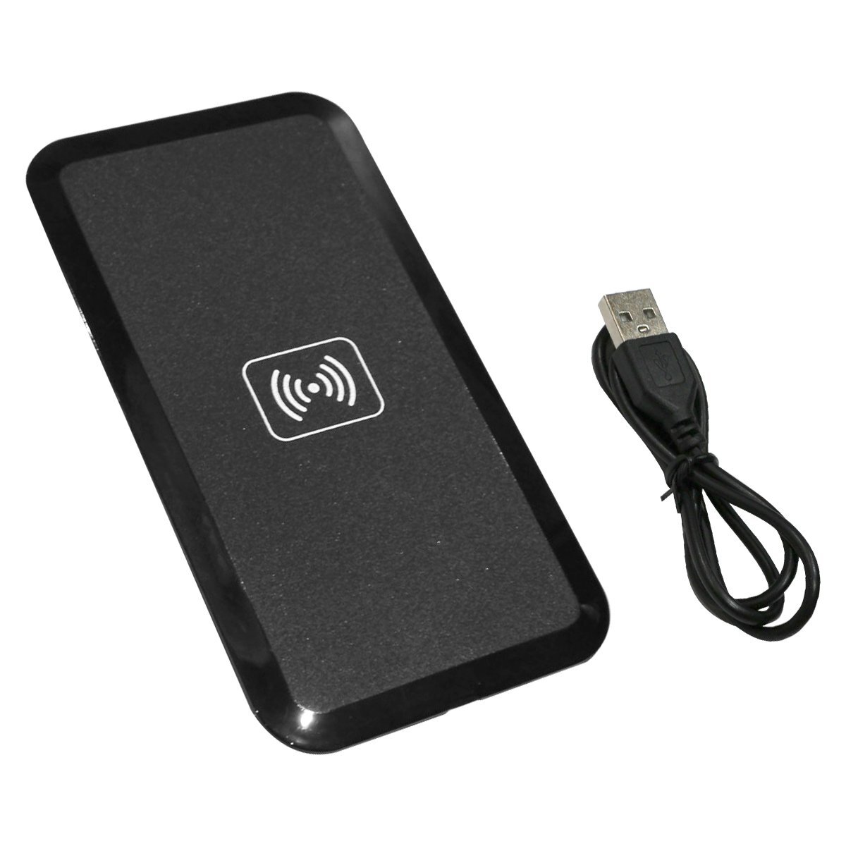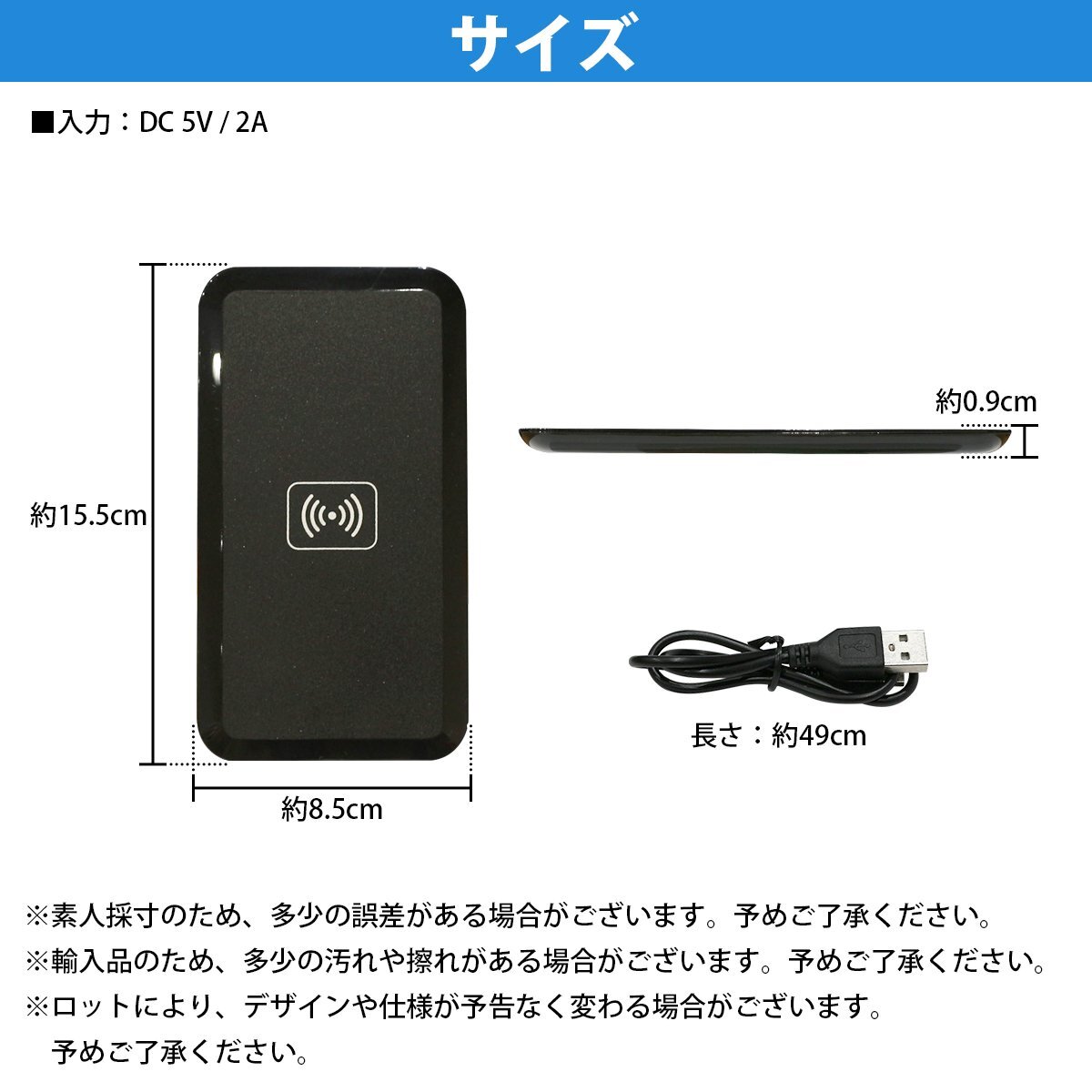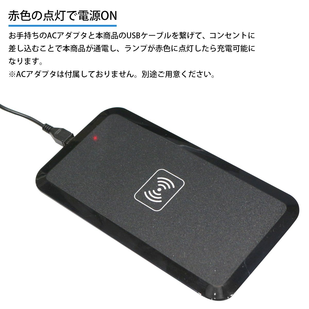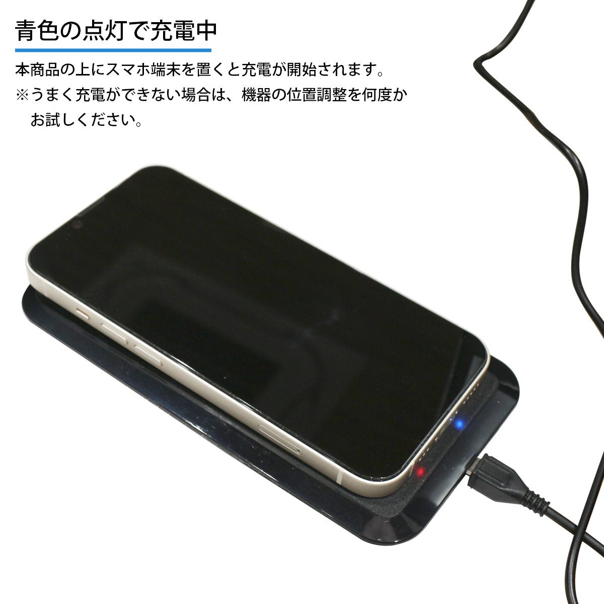 USBケーブル付 Qi (チー)対応 レシーバー スマホを載せるだけ♪便利な無線充電器!ワイヤレス充電器 角型 ブラック/黒 認定