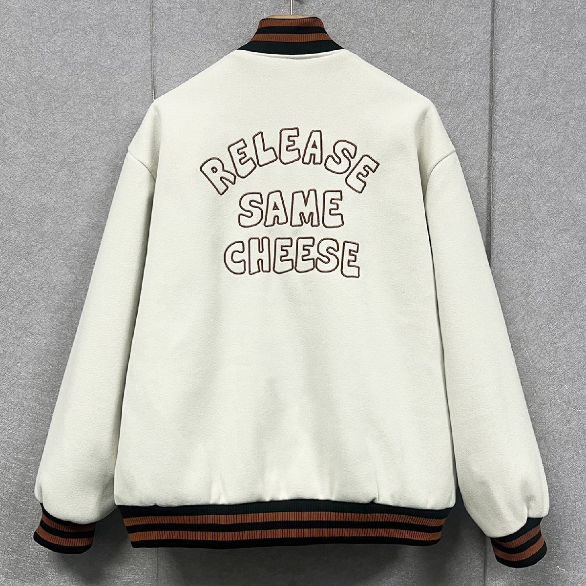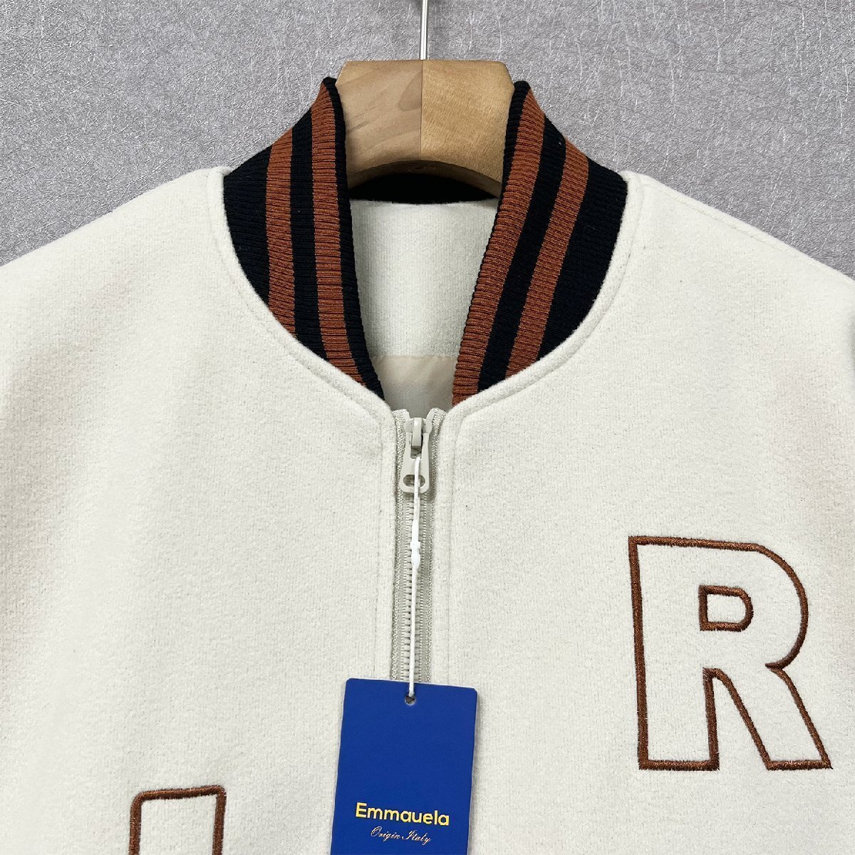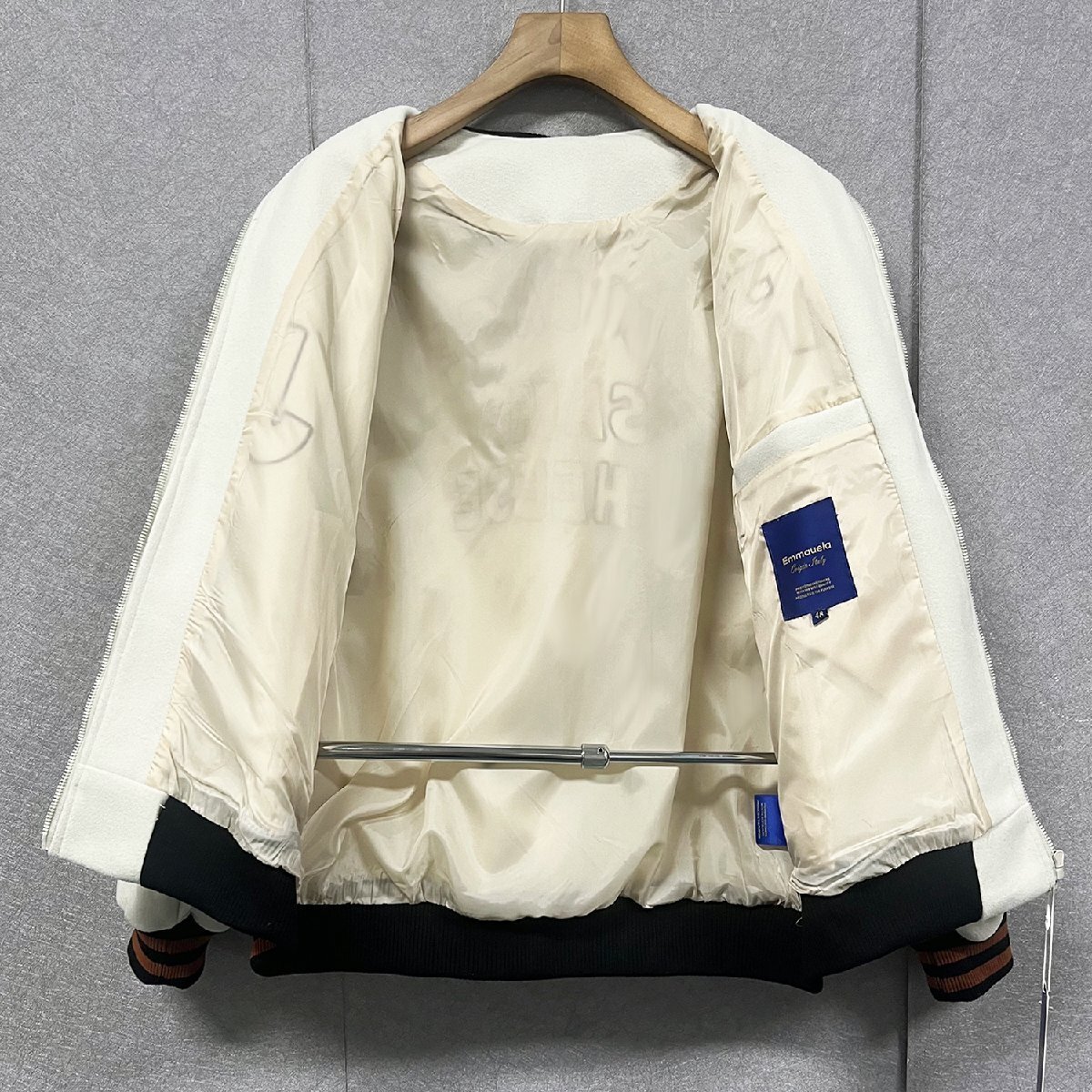 個性・スタジャン 定価7万◆Emmauela・イタリア・ミラノ発◆カシミア100% ソフト 保温 英字刺繍 ブルゾン カジュアル アメカジ 普段着 L/48