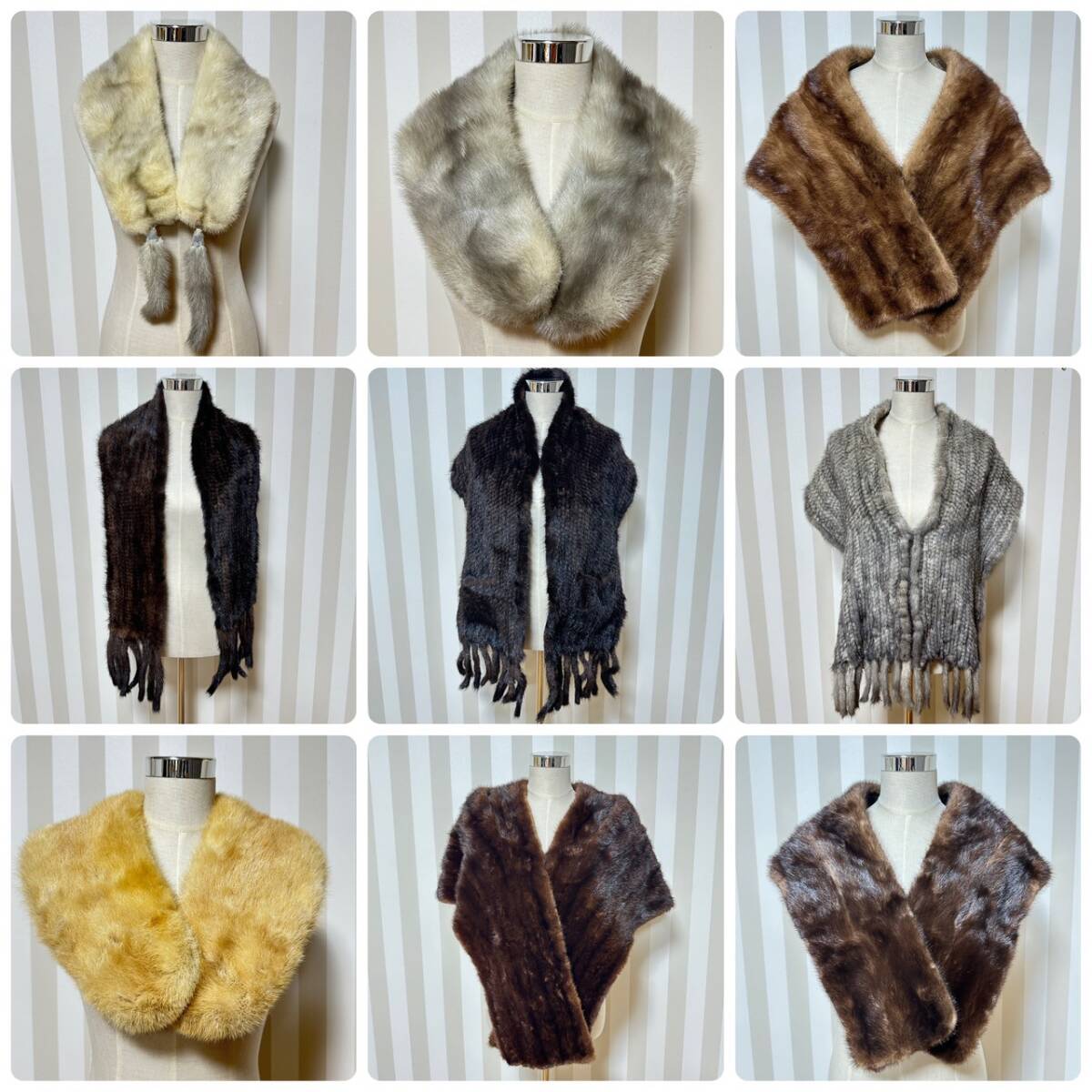 商品:★1円〜【毛皮9点まとめ】 ミンク ショール まとめ売り ストール 大判あり ホワイト グレー ブラウン 毛皮 本毛皮 成人式 和装 K160856