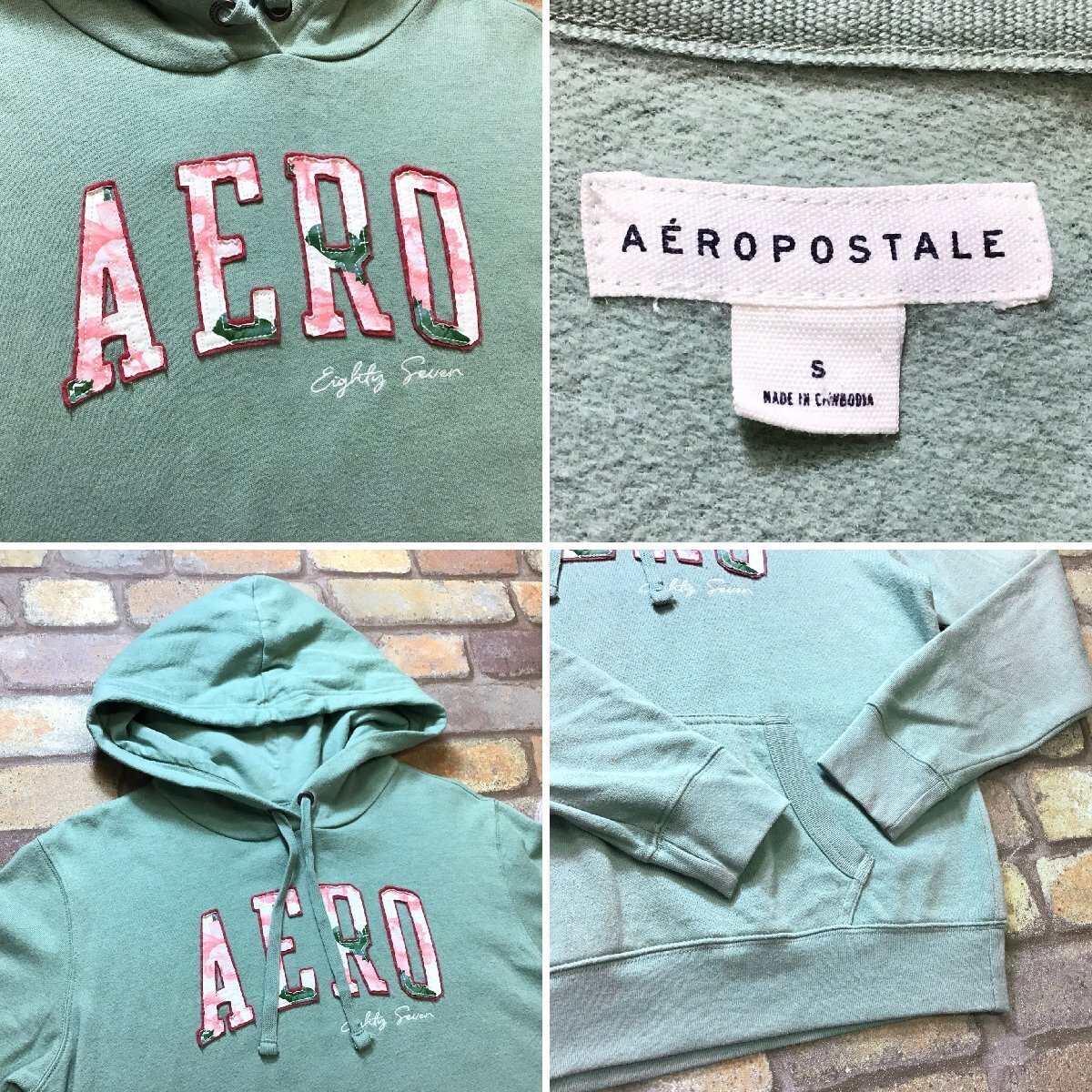 合計落札金額¥8,000円以上で、、、 送料無料!! ※こちらからの[合計支払い金額通知]をご確認の上、お支払い下さい♪ -------------------------------- 【 AEROPOSTALE エアロポステール 】 AEROロゴ スウェットパーカー ● USA輸入・正規品 ● ● 海外サイズ規格 ● -------------------------------------------------------- ・使用に伴う、毛羽立ち有り。 ・あまり目立ちませんが、右袖に少しヨゴレ、背面に擦れた跡有り。 くすみグリーンにボタニカル系デザインの生地のAEROロゴが GOODな1着です◎ ------------------------------------------------------ ◆ サイズ ◆ レディース S ※下記実寸のご確認をお願いいたします。 ◆ 実寸◆ 肩幅:47cm 身幅:53cm(両脇下間を計測) 着丈:56cm(背面襟元~裾を計測) 袖丈:63cm 素人採寸の為、多少の誤差はお許しください。 -------------------------------------------------------- ◆ 素材表記 ◆ コットン 60% ポリエステル 40% ----------------- | |||||
