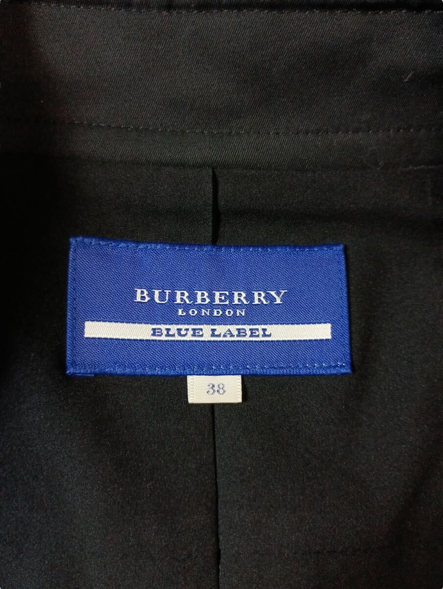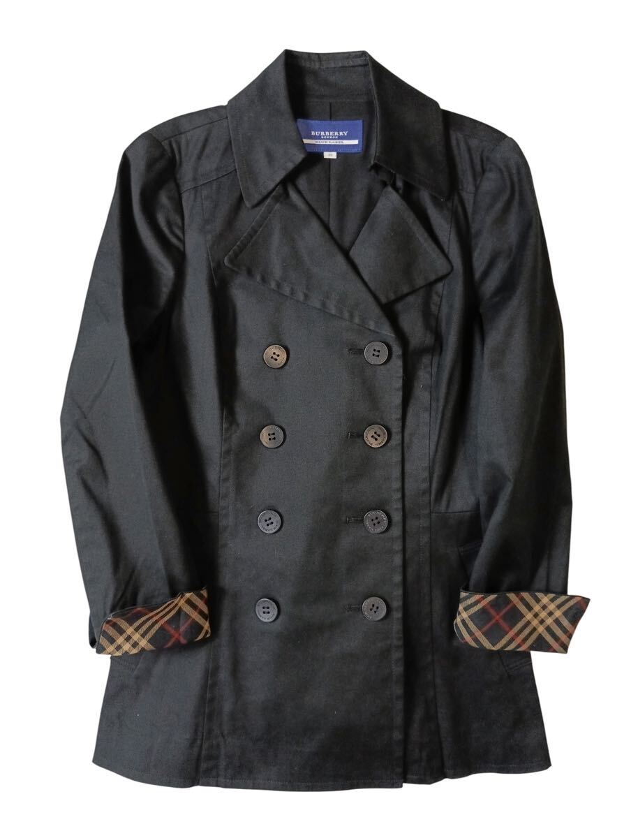 (D) BURBERRY BLUE LABEL バーバリーブルーレーベル コットン 38 ブラック ダブル ジャケット