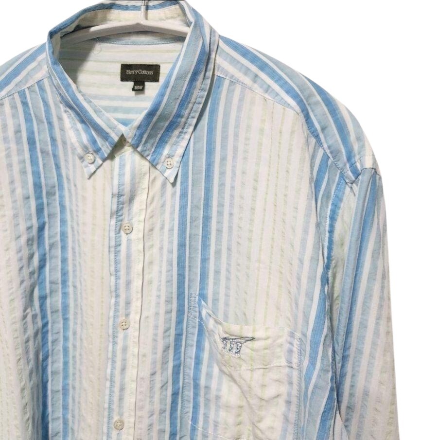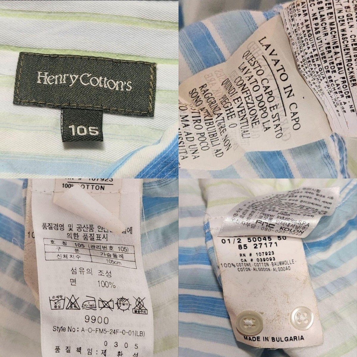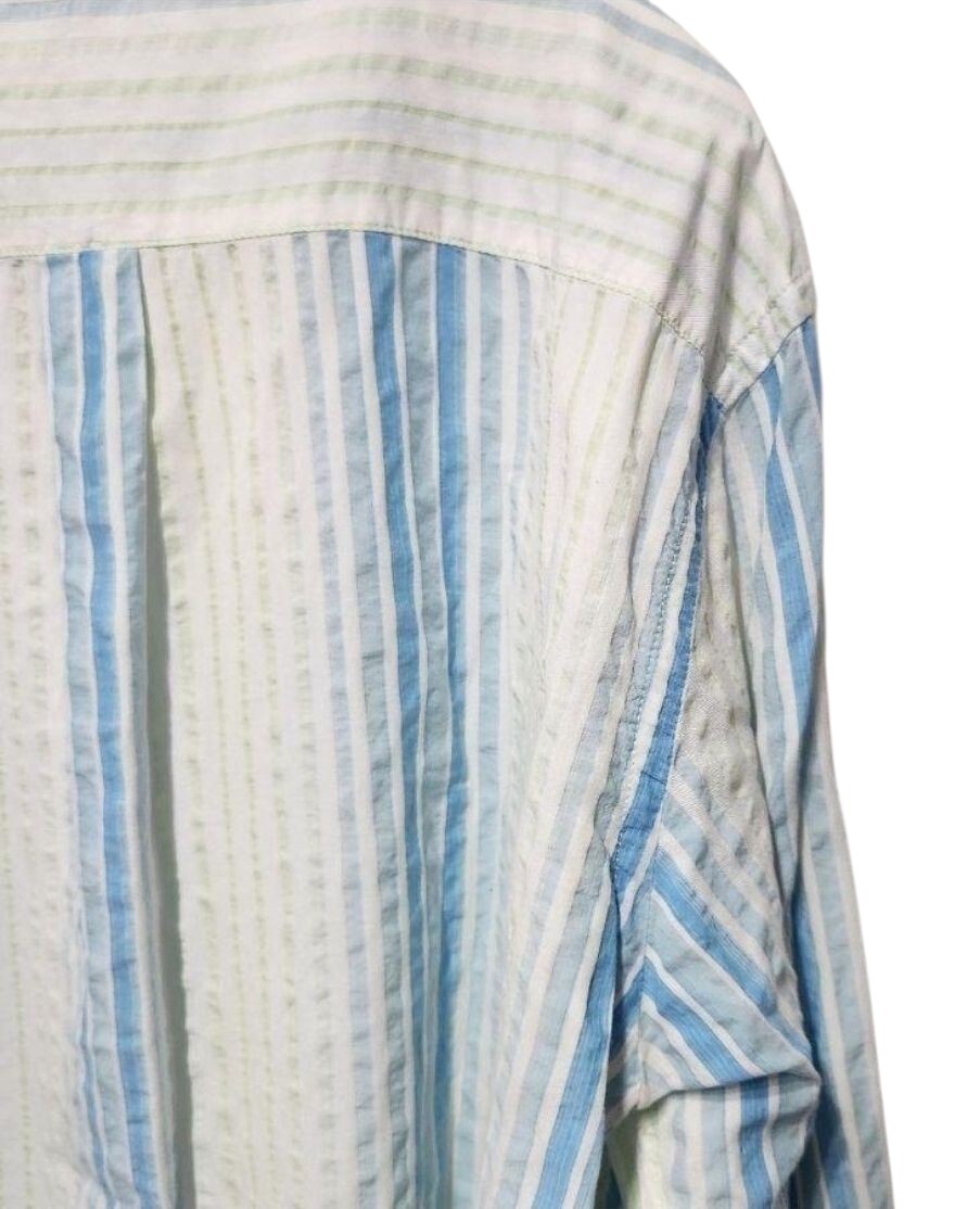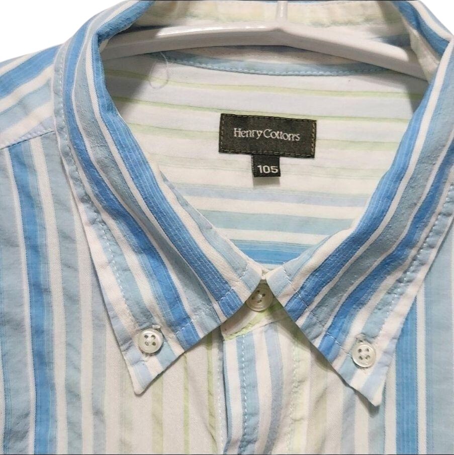 Henry Cotton’sの爽やかなストライプ柄シャツ。清涼感のあるブルー×ホワイト系で、春夏の羽織りやカジュアルコーデに最適です。ゆったりとしたXLサイズで、オーバーサイズ風にも着こなせます。ビジネスカジュアルやリゾートシーンにもおすすめ。