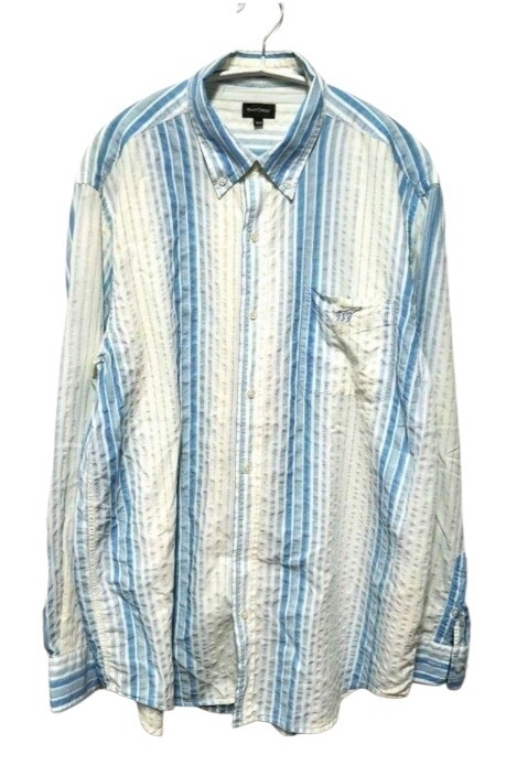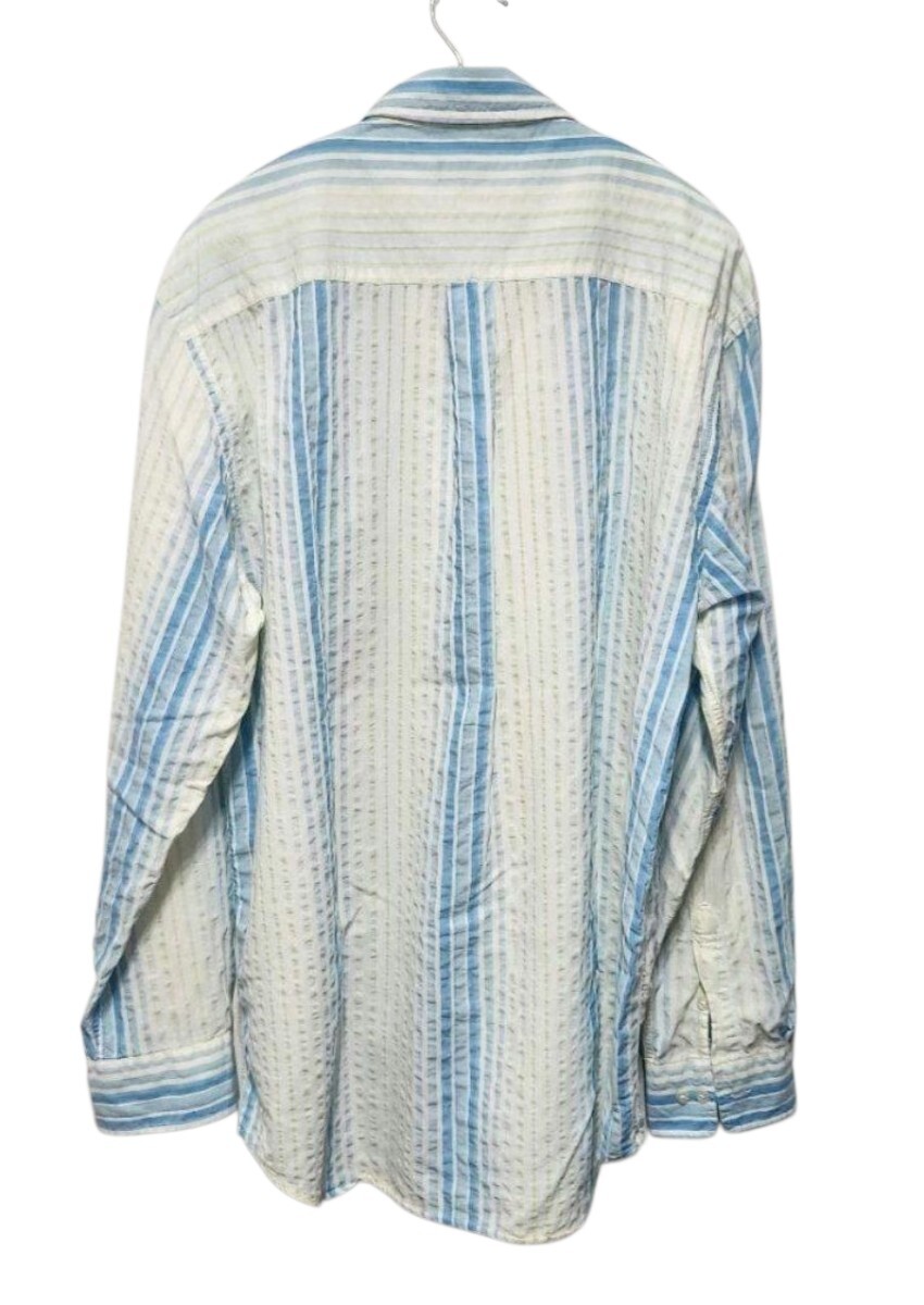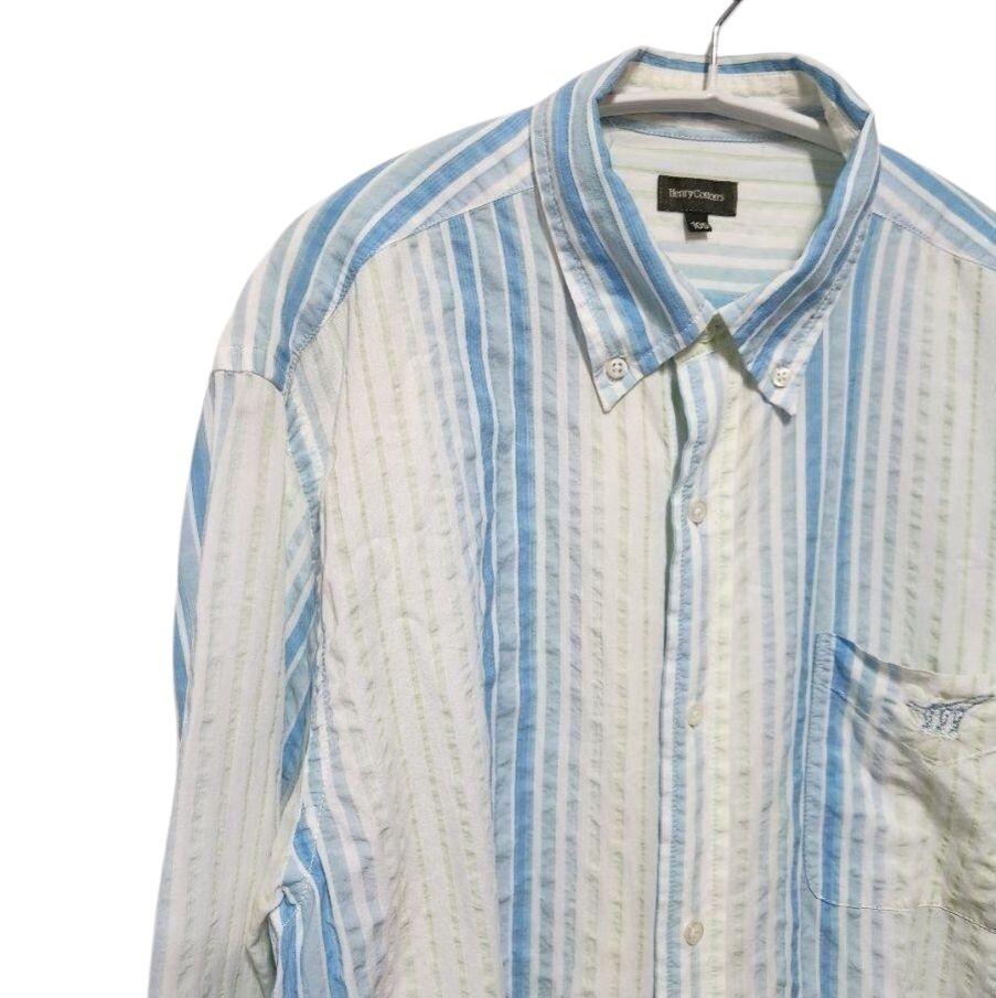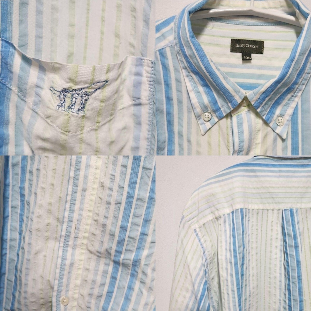 Henry Cotton’sの爽やかなストライプ柄シャツ。清涼感のあるブルー×ホワイト系で、春夏の羽織りやカジュアルコーデに最適です。ゆったりとしたXLサイズで、オーバーサイズ風にも着こなせます。ビジネスカジュアルやリゾートシーンにもおすすめ。
