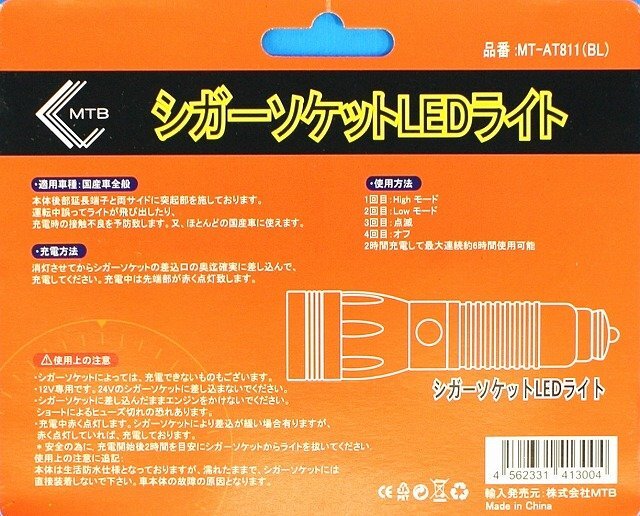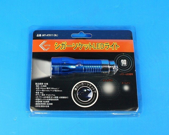 シガーソケット充電式 LEDライト MT-AT811 ブルー 3個/1セット