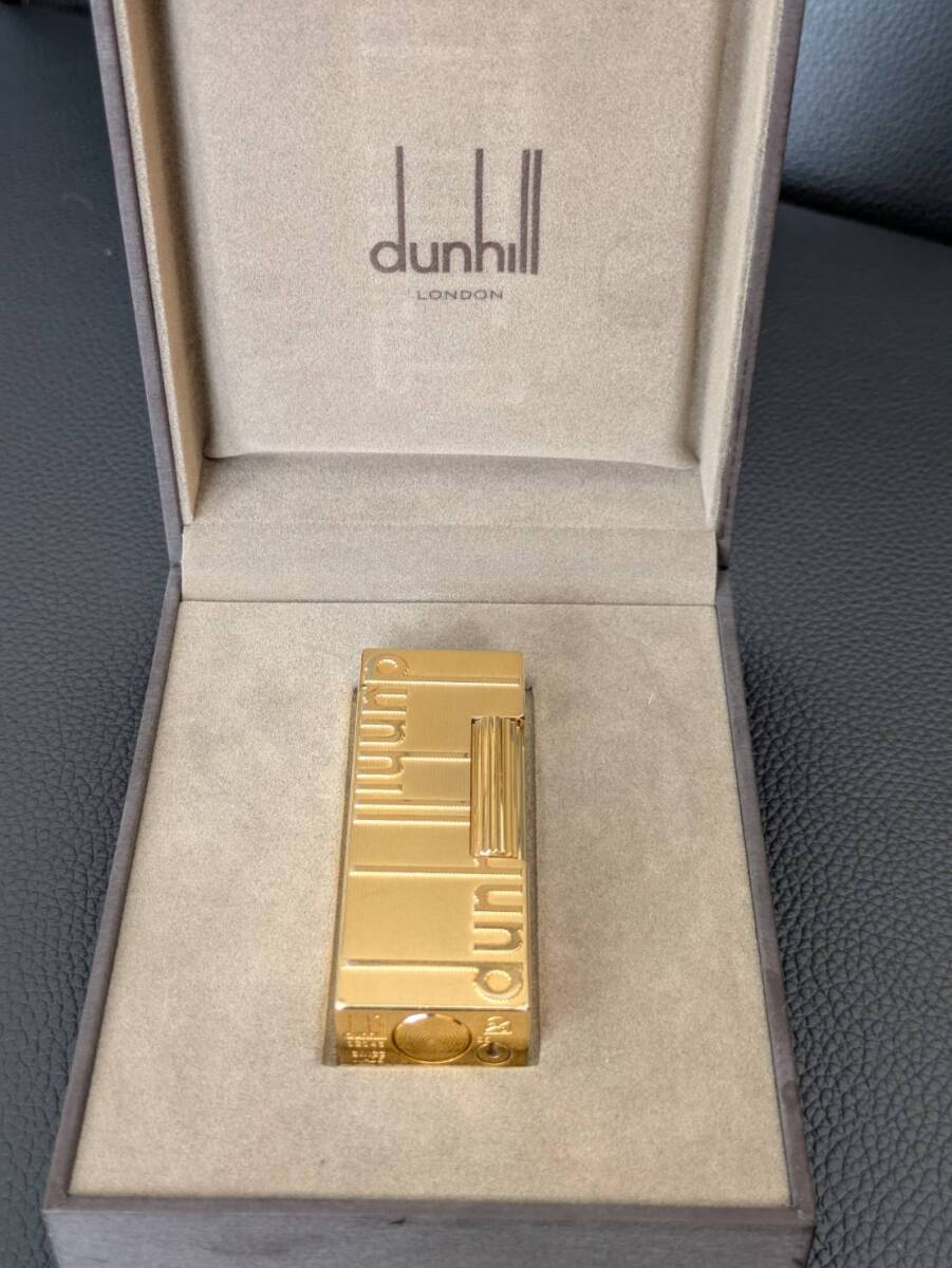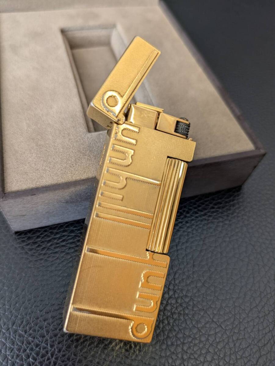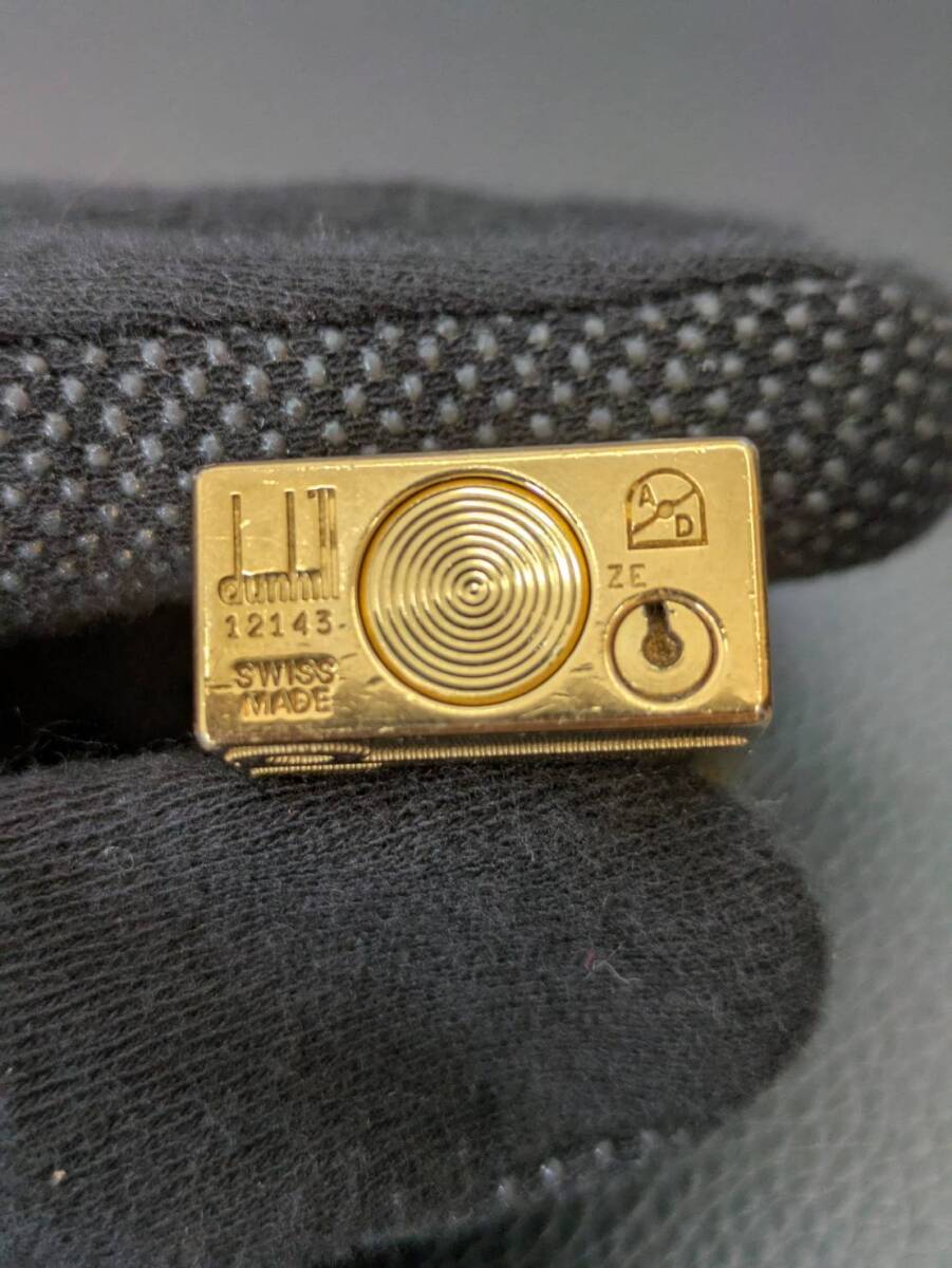 #6628【dunhill ガスライター 中古】ゴールド 箱付き スイス製 ローラー式 金メッキ コレクション 愛煙家 高級ライター ダンヒル