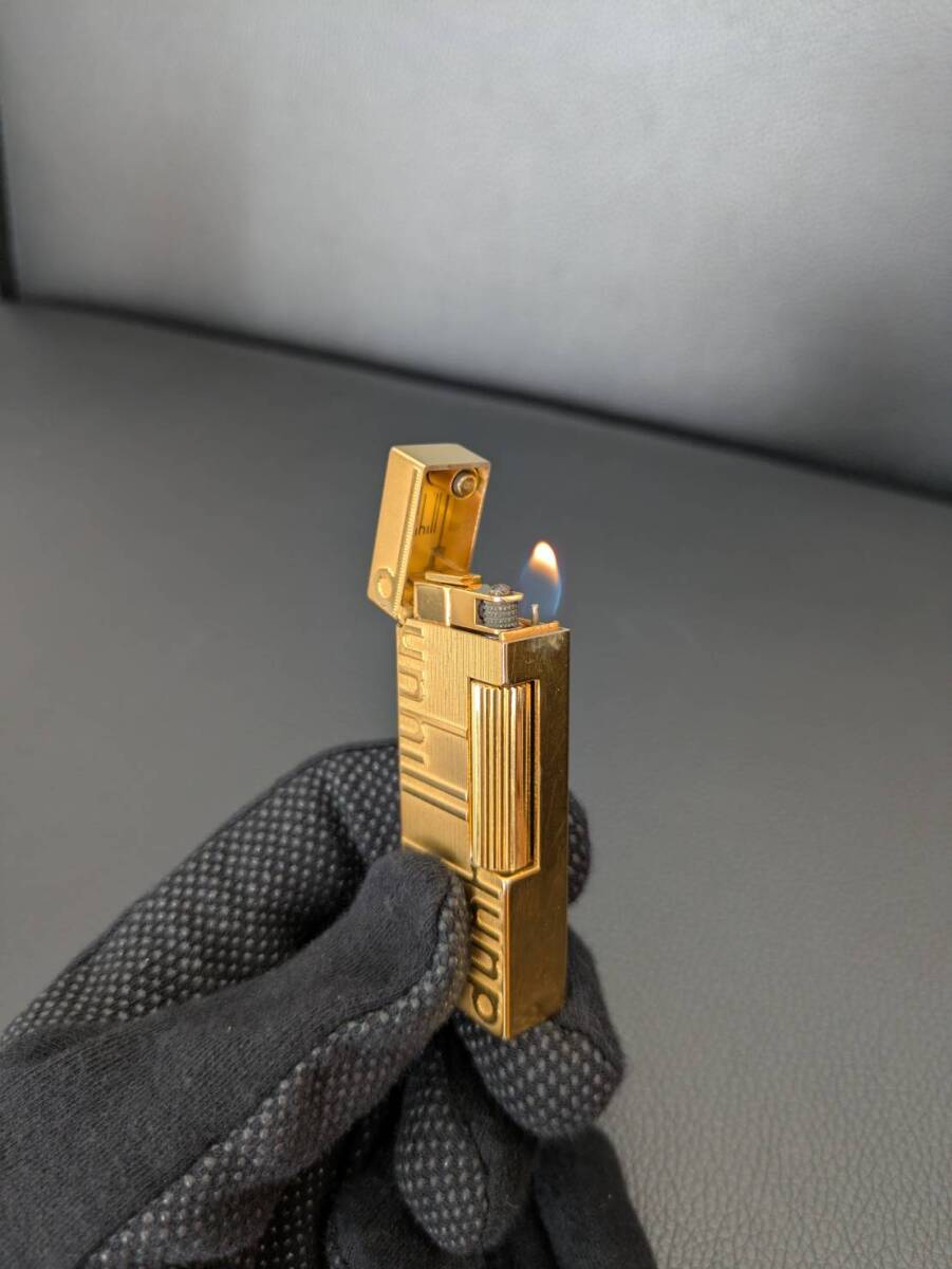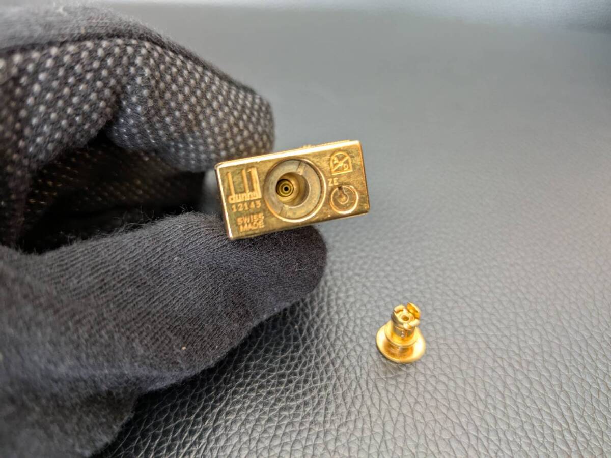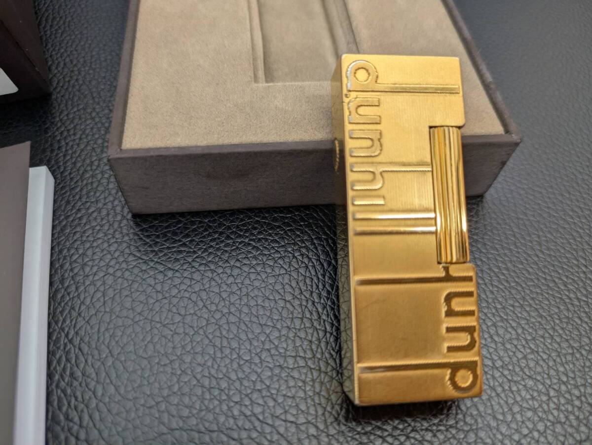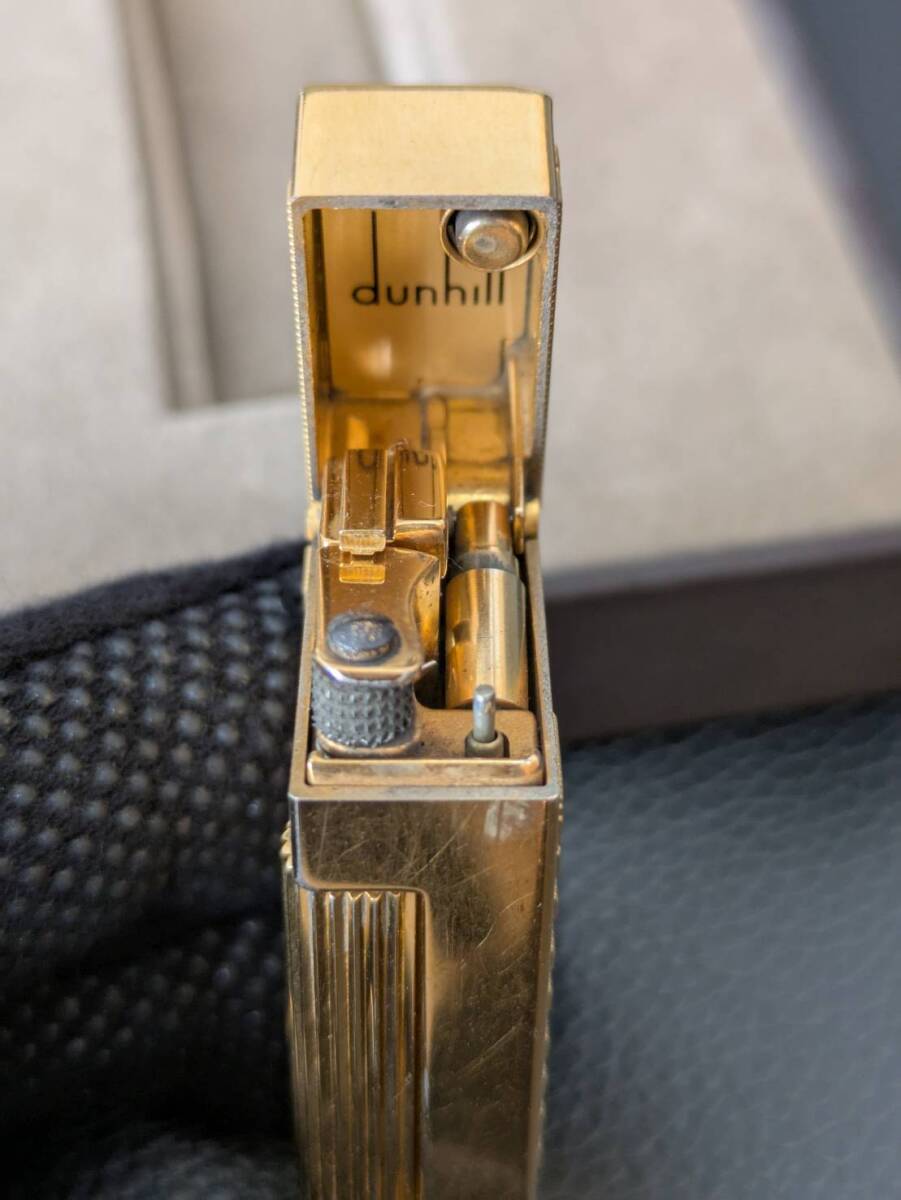 #6628【dunhill ガスライター 中古】ゴールド 箱付き スイス製 ローラー式 金メッキ コレクション 愛煙家 高級ライター ダンヒル