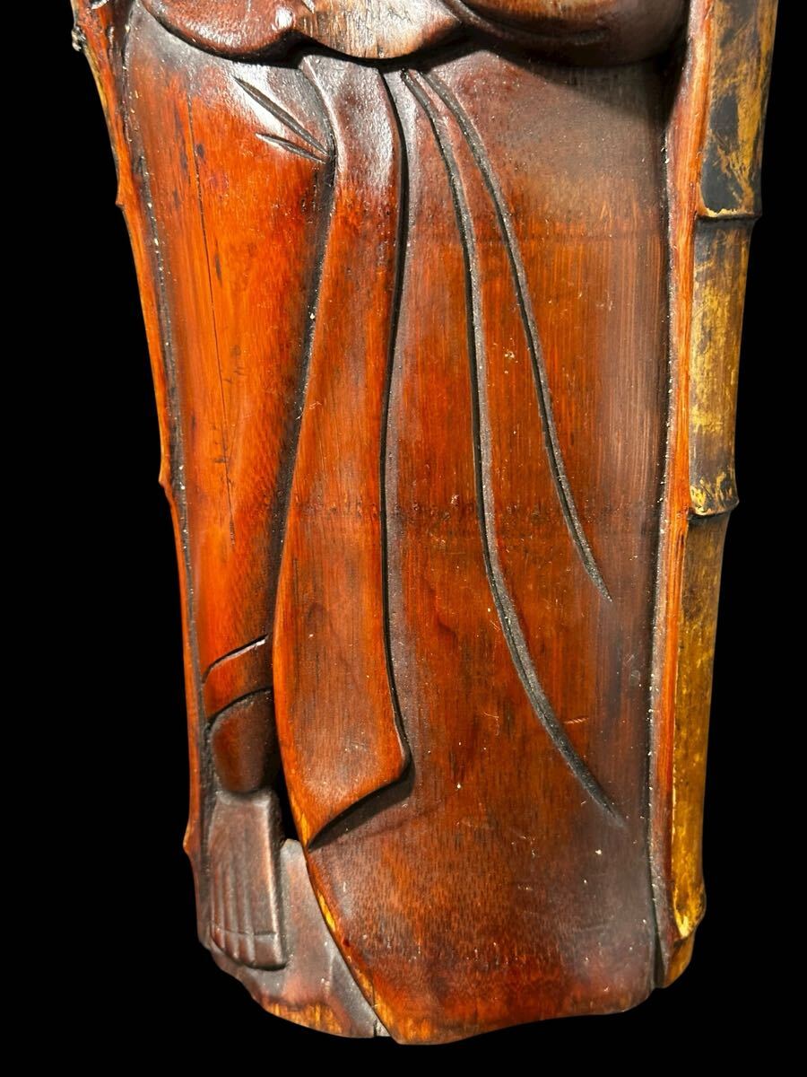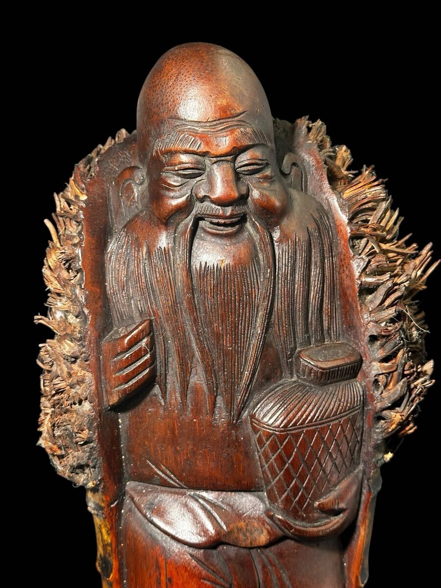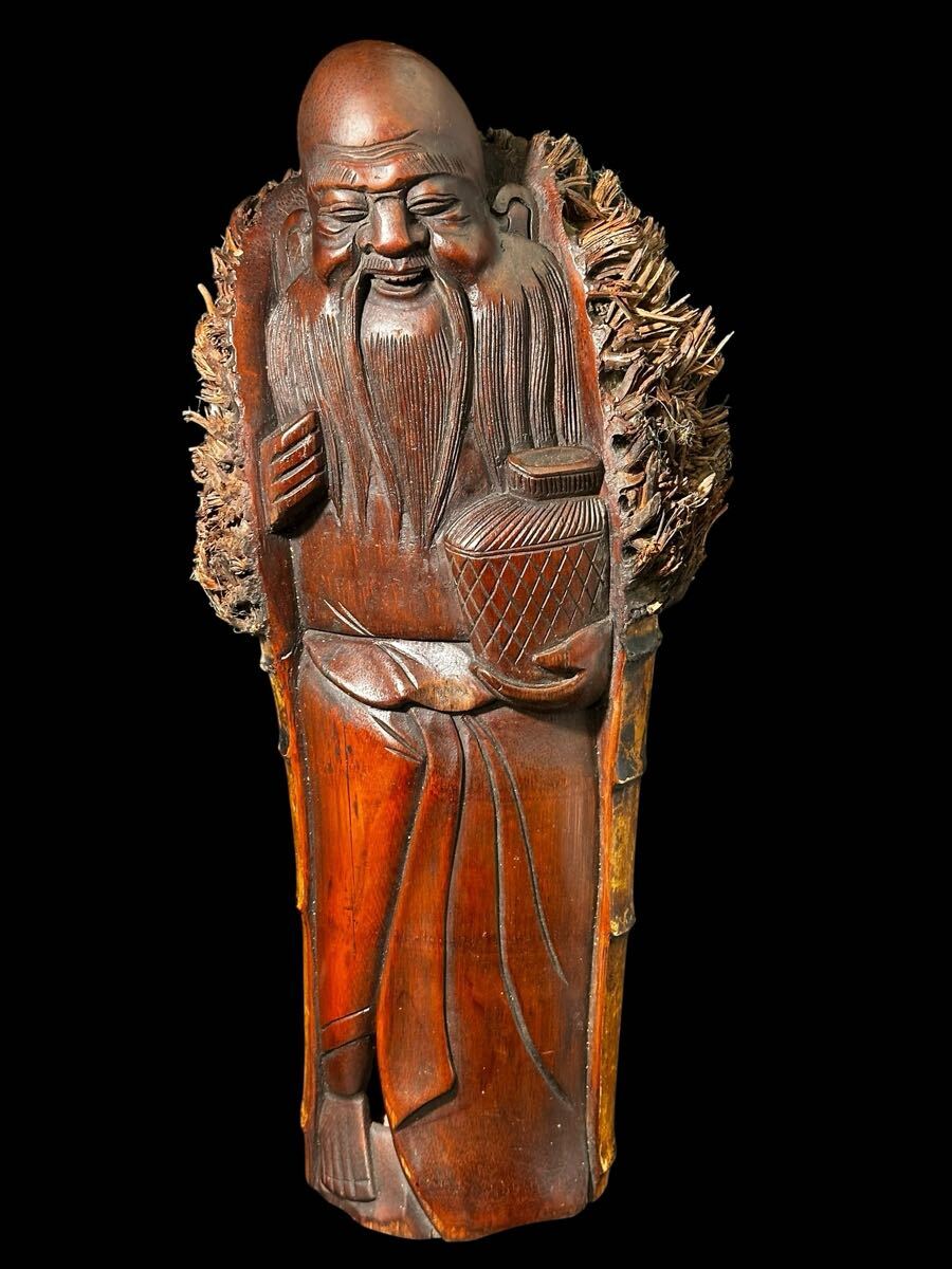 【商品の説明】竹工芸 古竹 煤竹 骨董 古美術 寿老人 仙人 七福神 一刀彫 時代物 民藝 古物 (41×18×12cm)