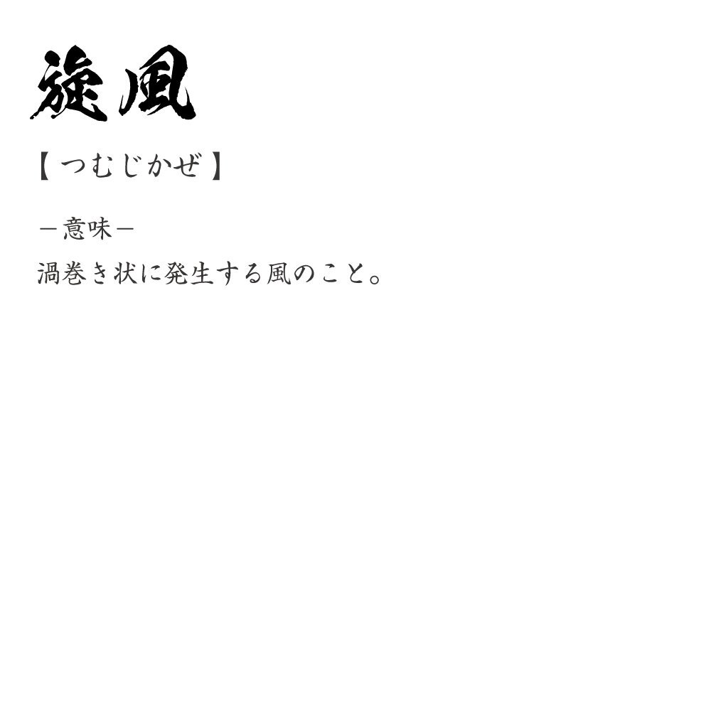 旋風 (つむじかぜ) 書道家が書く プリント Tシャツ S M L XL XXL 120 130 140 390 G-S G-M G-L 【 二字熟語 】