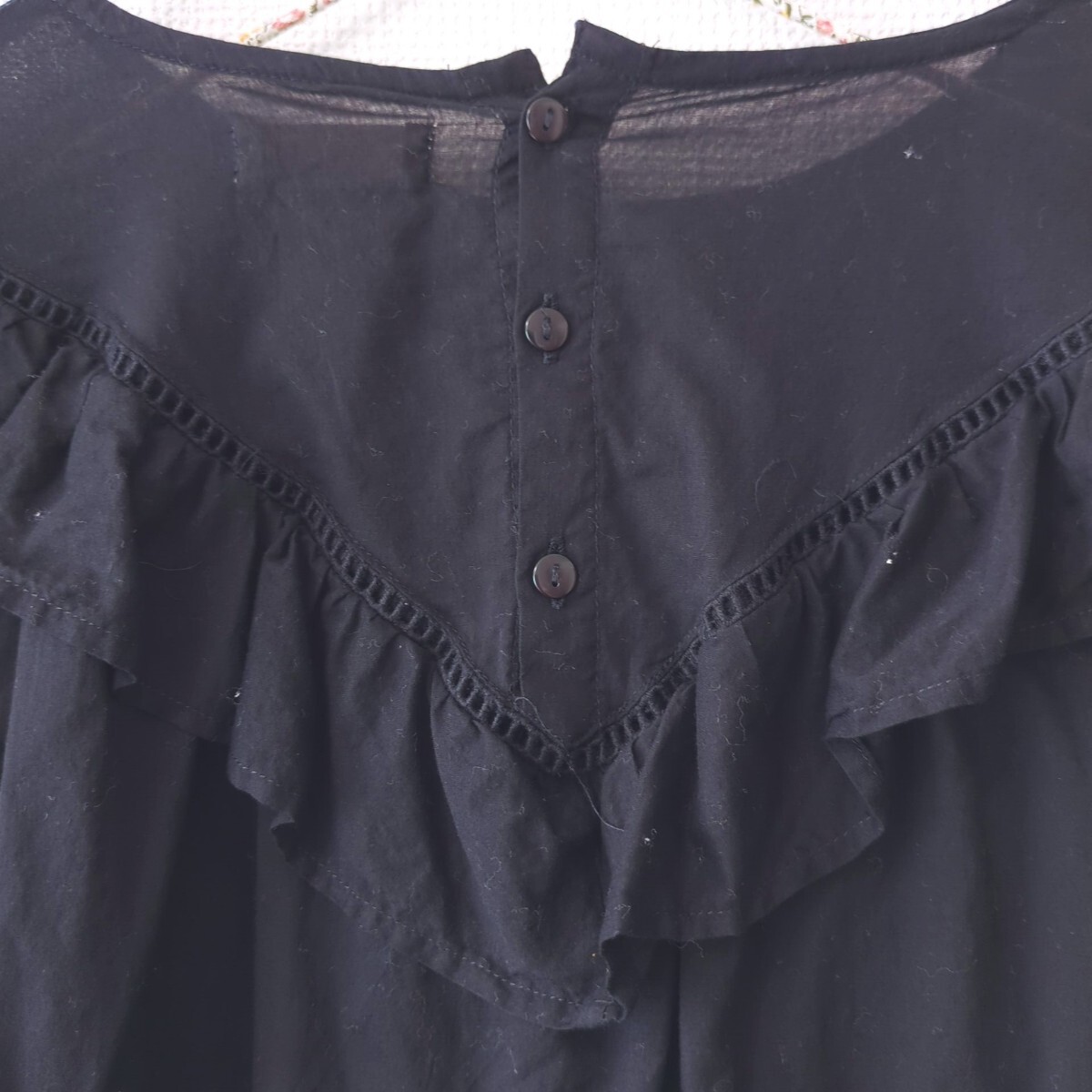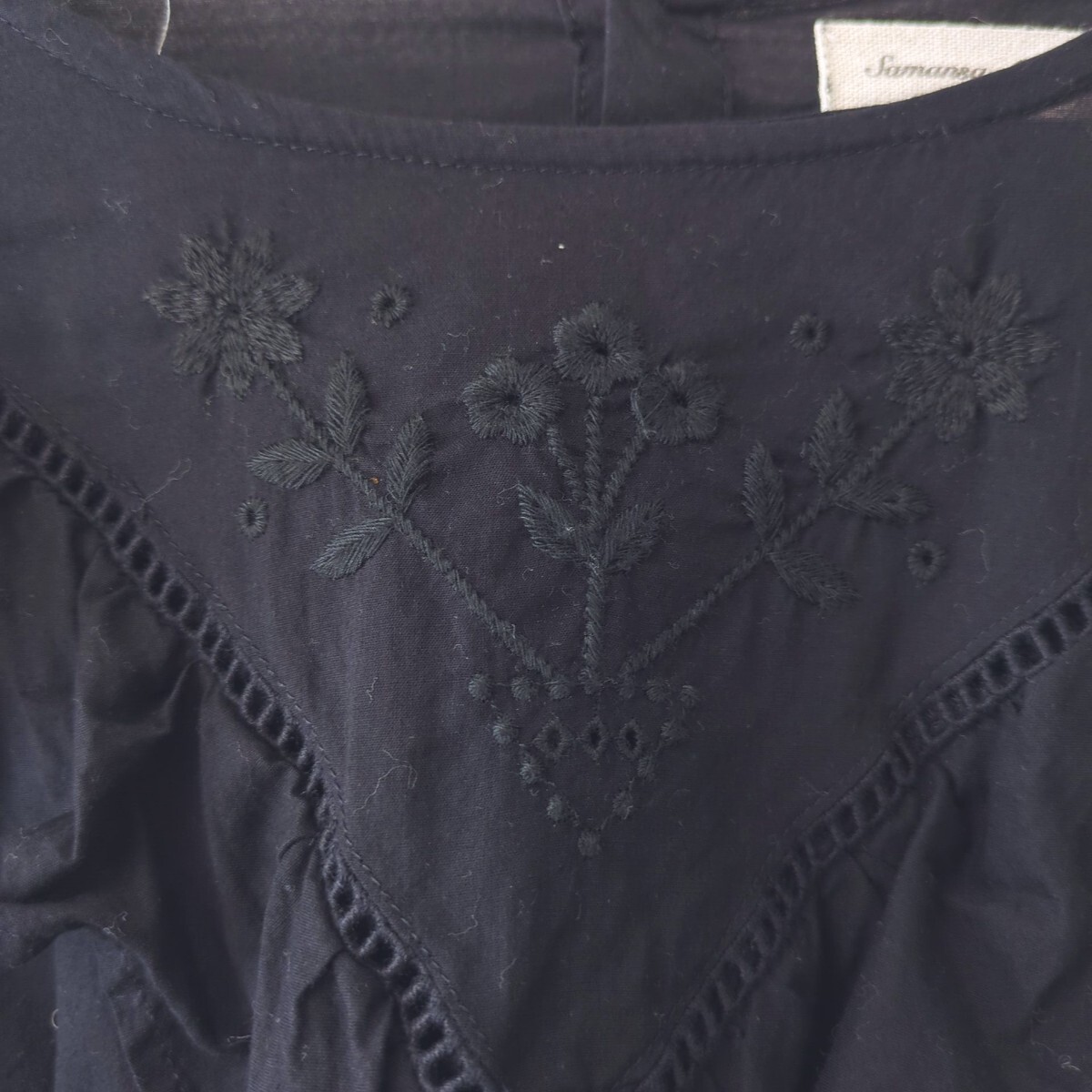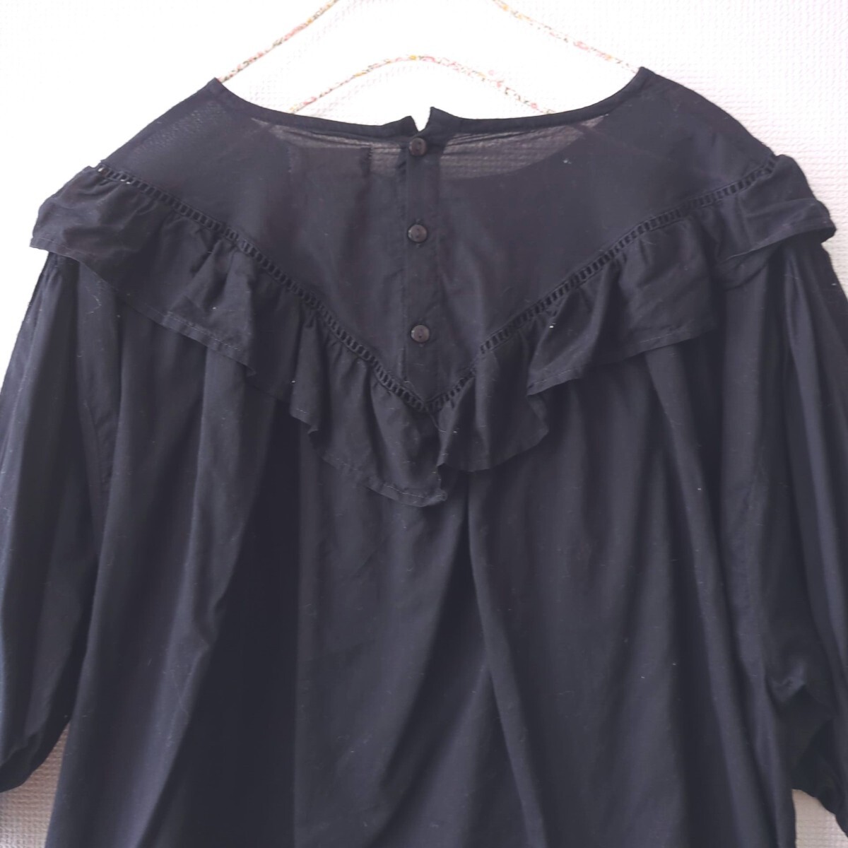 美品 Samansa Mos2 サマンサモスモス 襟フリル刺繍五分袖ブラウス 黒 春夏